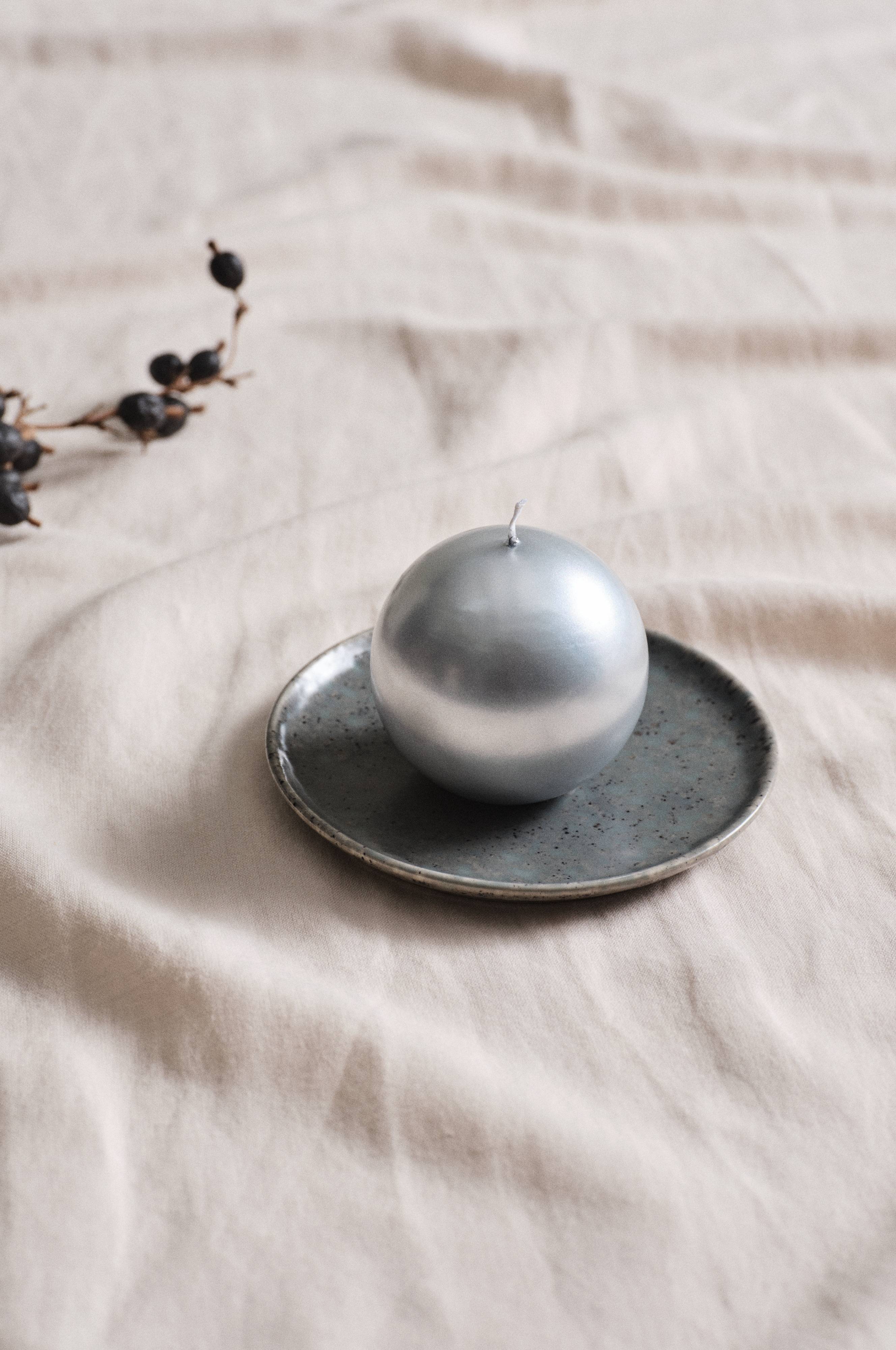 Een bolkaars van paraffine die in een metallic kleur is gedoopt. Deze mooie, ronde kaars is met de hand gemaakt in Zweden. Kaarsen brengen een gezellige sfeer in huis als het buiten donker is. Paraffine heeft goede brandeigenschappen en het RAL-keurmerk laat zien dat de paraffine met weinig rook en roet brandt.