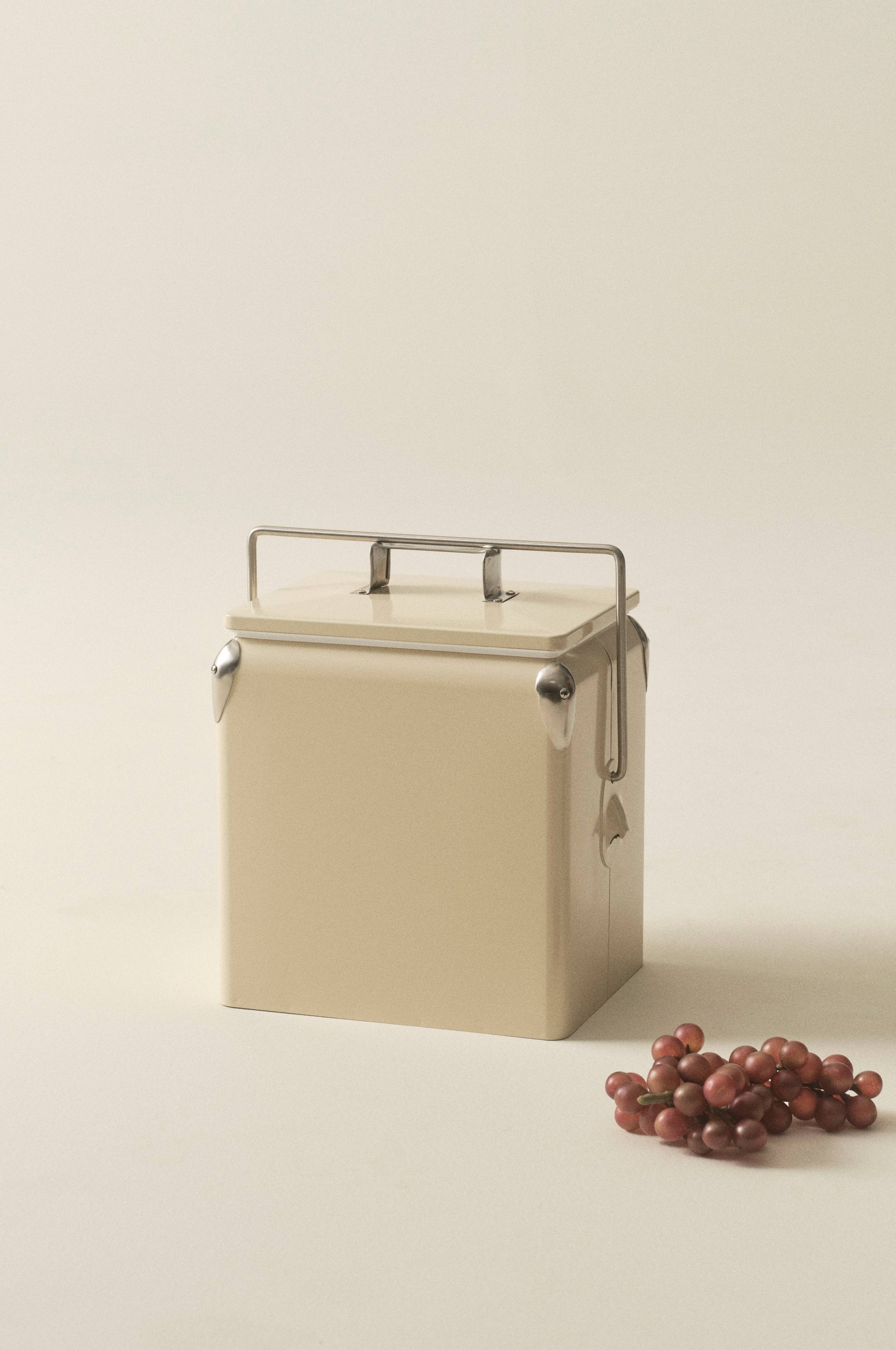 Een prachtige koelbox met retro-invloeden. De koelbox heeft een metalen buitenzijde en een binnenkant van kunststof. De koelbox is een eyecatcher met mooie zilverkleurige stalen details. Het deksel is volledig afneembaar en de handgreep van rvs vormt de sluiting van de koelbox. De afwerking is zowel van buiten als van binnen glanzend en eenvoudig af te nemen.