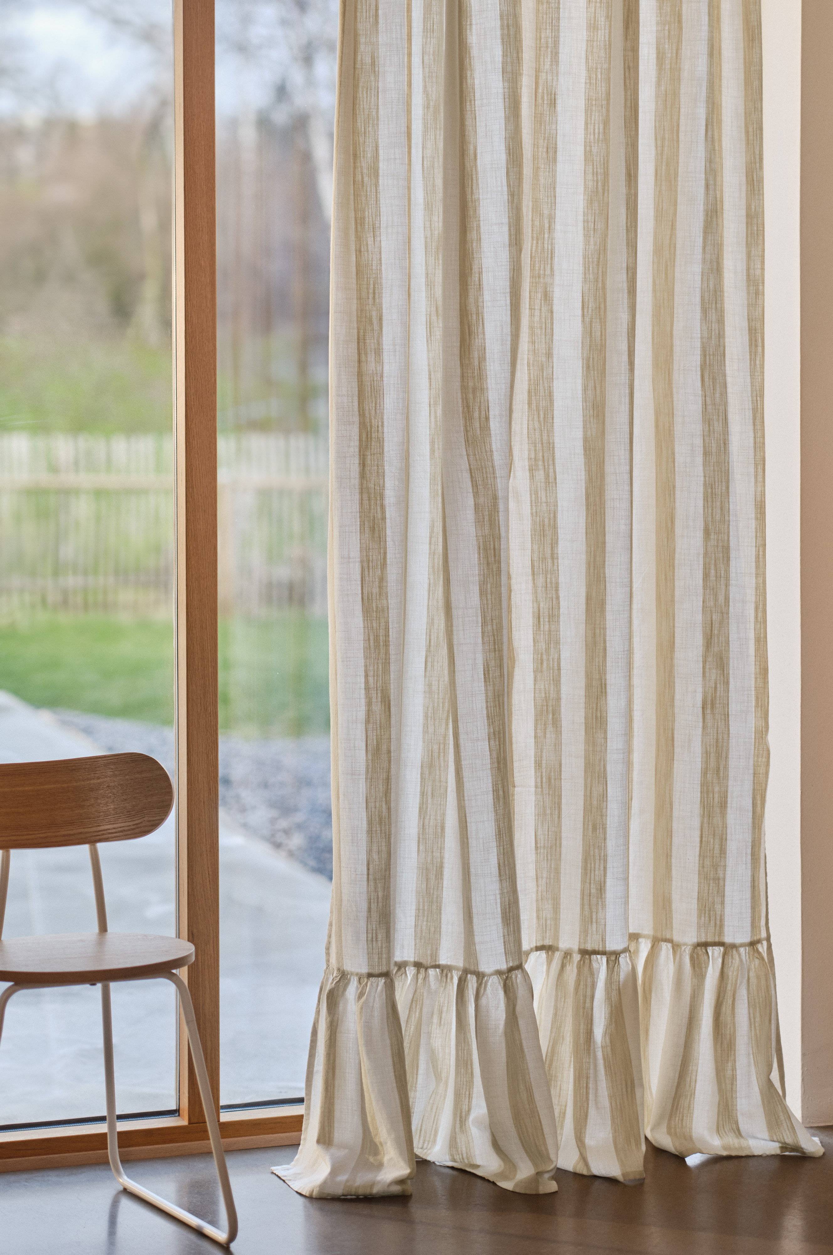 Het IRIS-gordijn heeft een charmante vintage uitstraling met zijn gestreepte patroon en volant aan de onderkant. Gemaakt van katoenen stof met een zachte touch, voegt het een gezellige maar stijlvolle sfeer toe aan elke kamer. Met één lengte in elke verpakking kun je je interieur gemakkelijk en met finesse op maat maken. Het IRIS-gordijn is een aanvulling op zowel traditionele als eigentijdse meubels, waardoor het een ideale keuze is voor wie zijn huis een klassieke uitstraling wil geven.