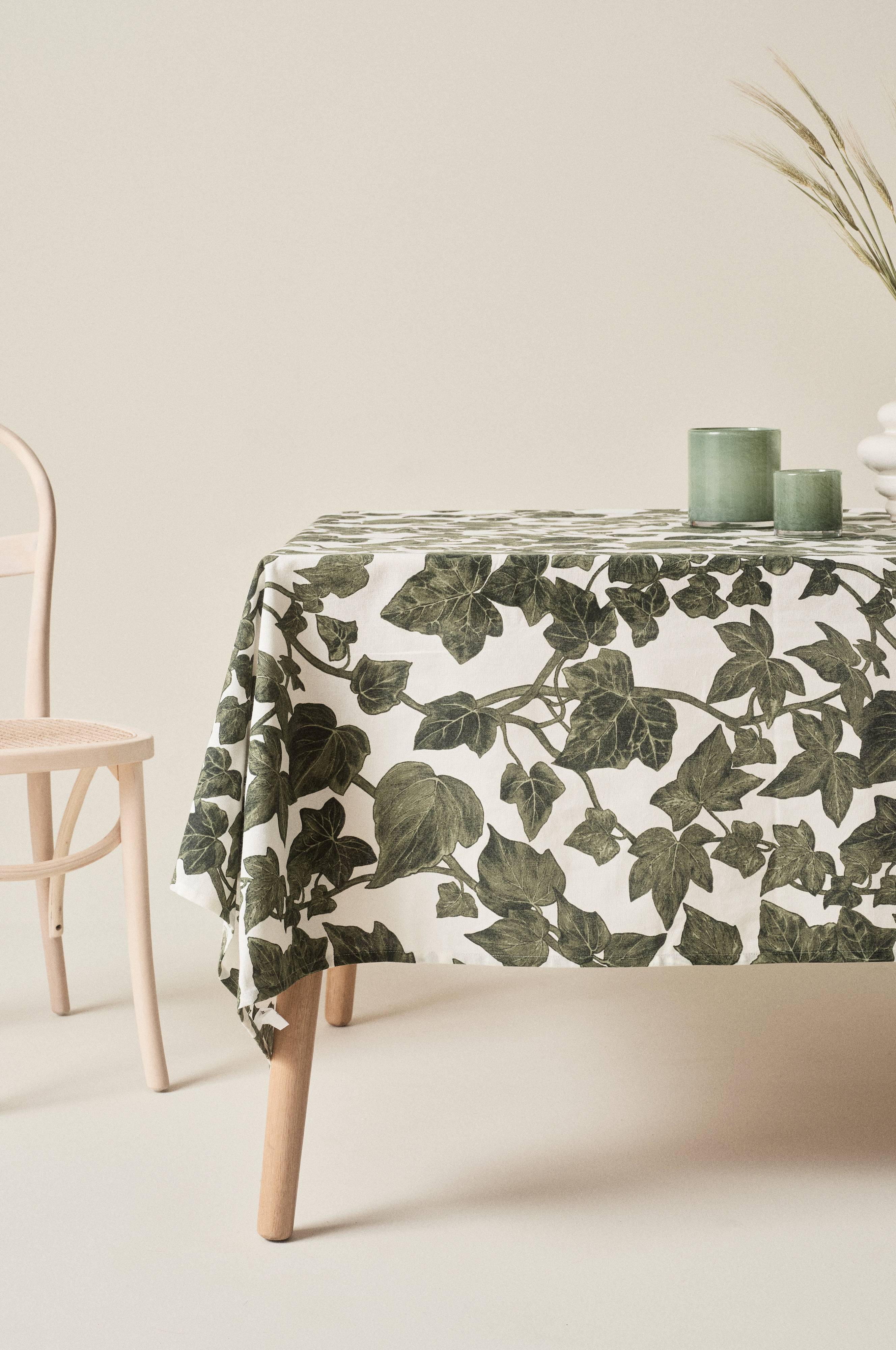 IVY is een opvallende, uitnodigende collectie gemaakt van katoen. De klimopprint op een natuurwitte achtergrond heeft een natuurlijke uitstraling. De kwaliteit heeft een mooie ingeweven structuur.
