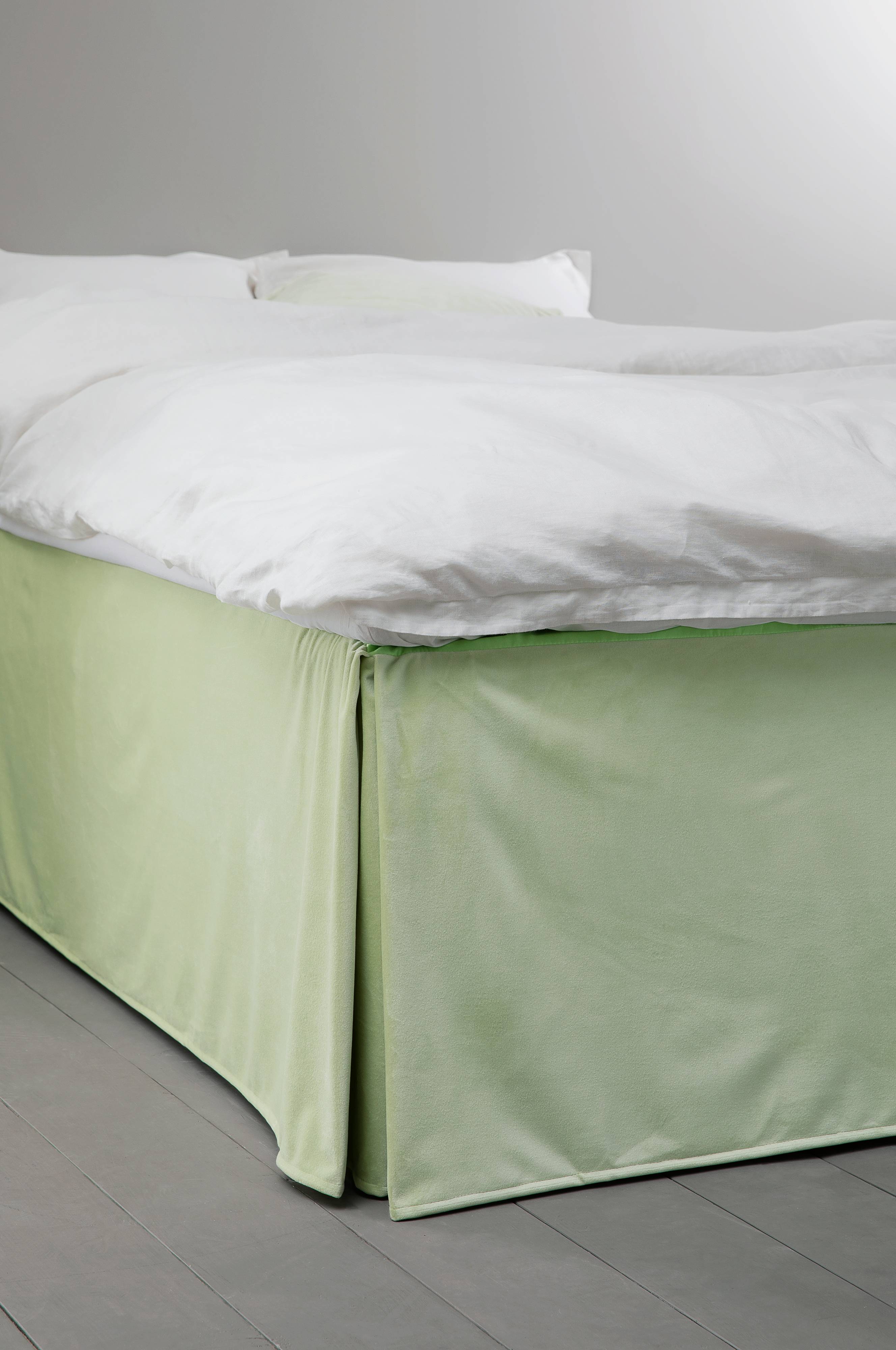 Een effen bedrok met drie fluwelen zijdes en een bovenzijde van katoen.