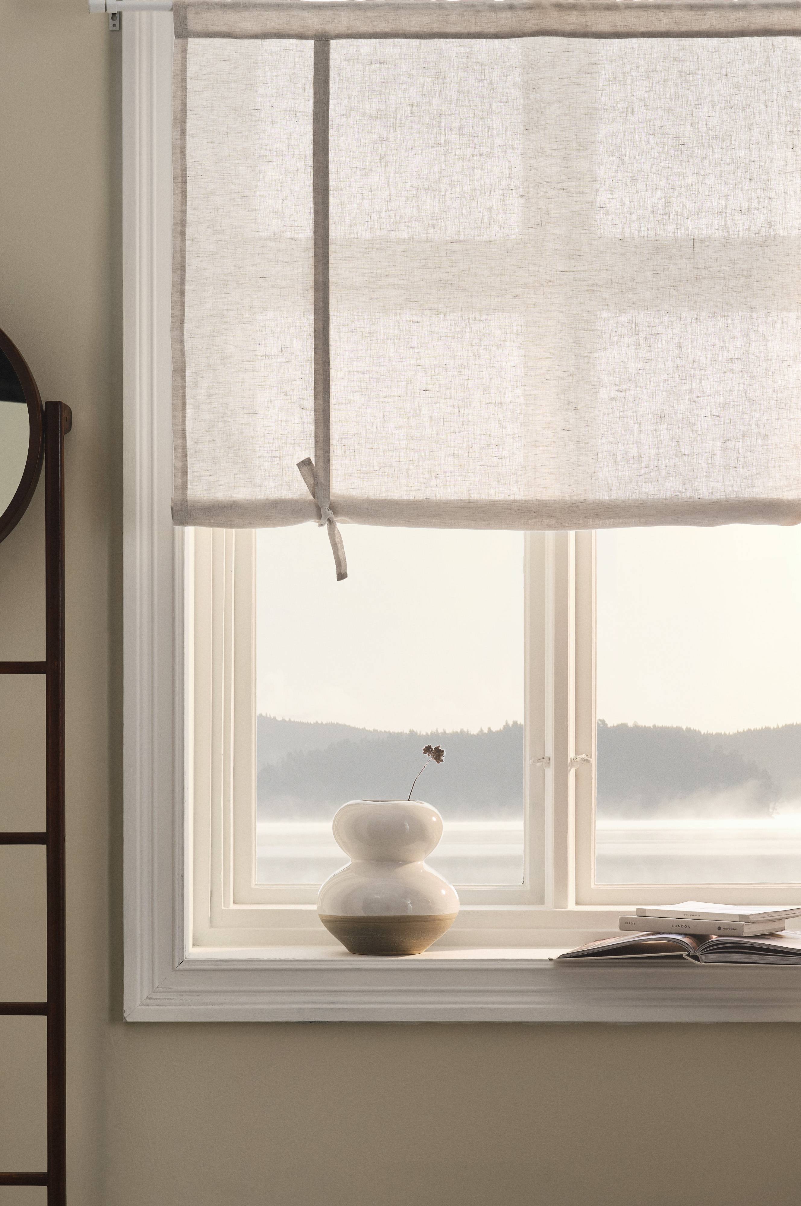Oprolbaar gordijn van echt linnen dat is gecertificeerd met Europees vlas. Het gordijn heeft een gladde, iets dunnere kwaliteit die comfortabel aanvoelt. Het linnen in JONIE is gewassen om het zachter en soepeler te laten aanvoelen. Linnen is een kwaliteit die na verloop van tijd ook zachter en comfortabeler wordt, dus je zult nog lang plezier hebben van JONIE. Het oprolgordijn wordt opgehangen aan een gewone gordijnroede. De hoogte is verstelbaar met een bandje. De frisse kleurstelling is geïnspireerd op de natuur.