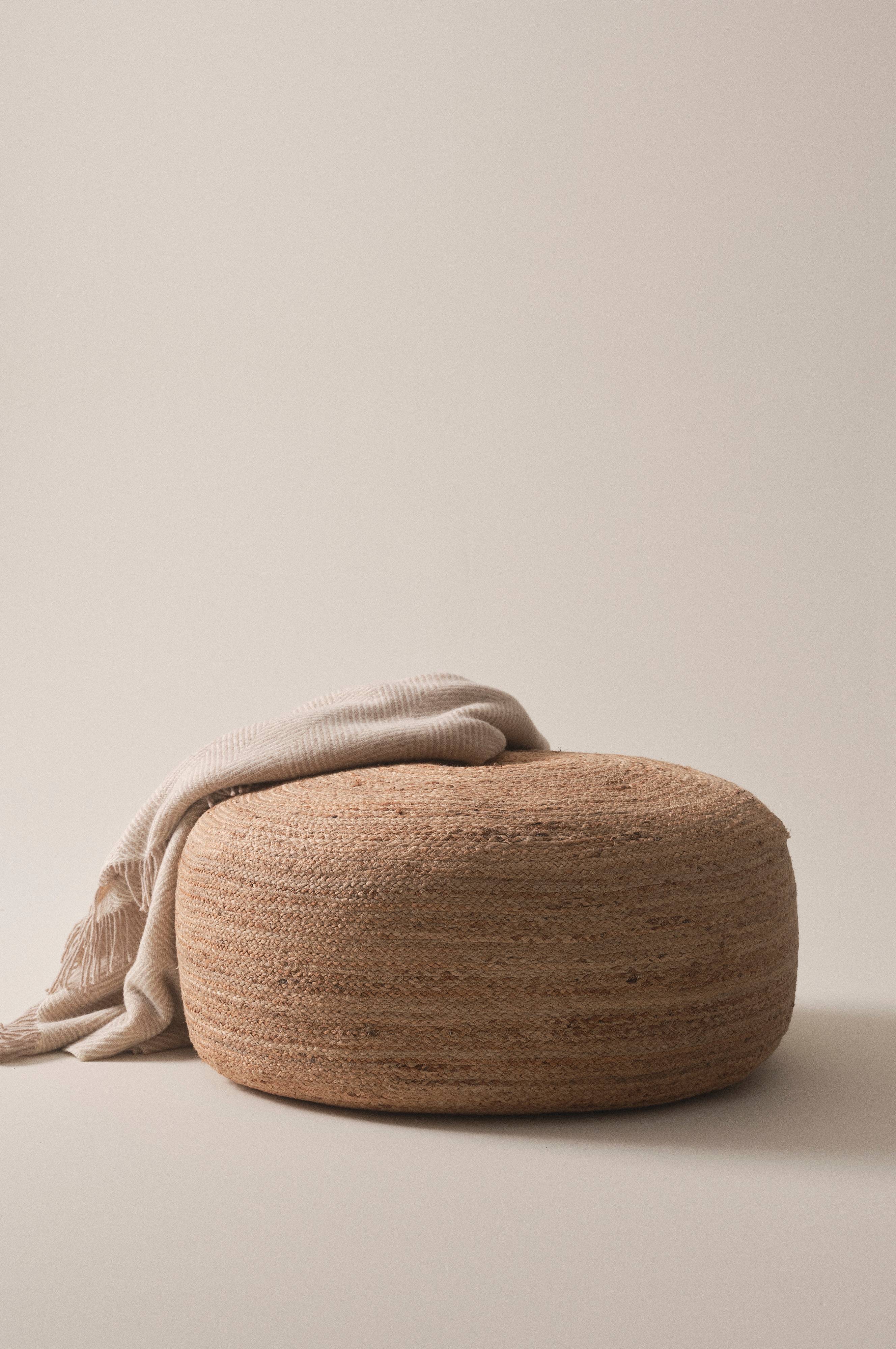 Een handgeweven zitpoef van jute met een zachte vulling van schuimbolletjes. De poef heeft een authentieke, natuurlijke uitstraling dankzij het materiaal van jute. Door het mooie handwerk is elke poef uniek. De bekleding is niet afneembaar.