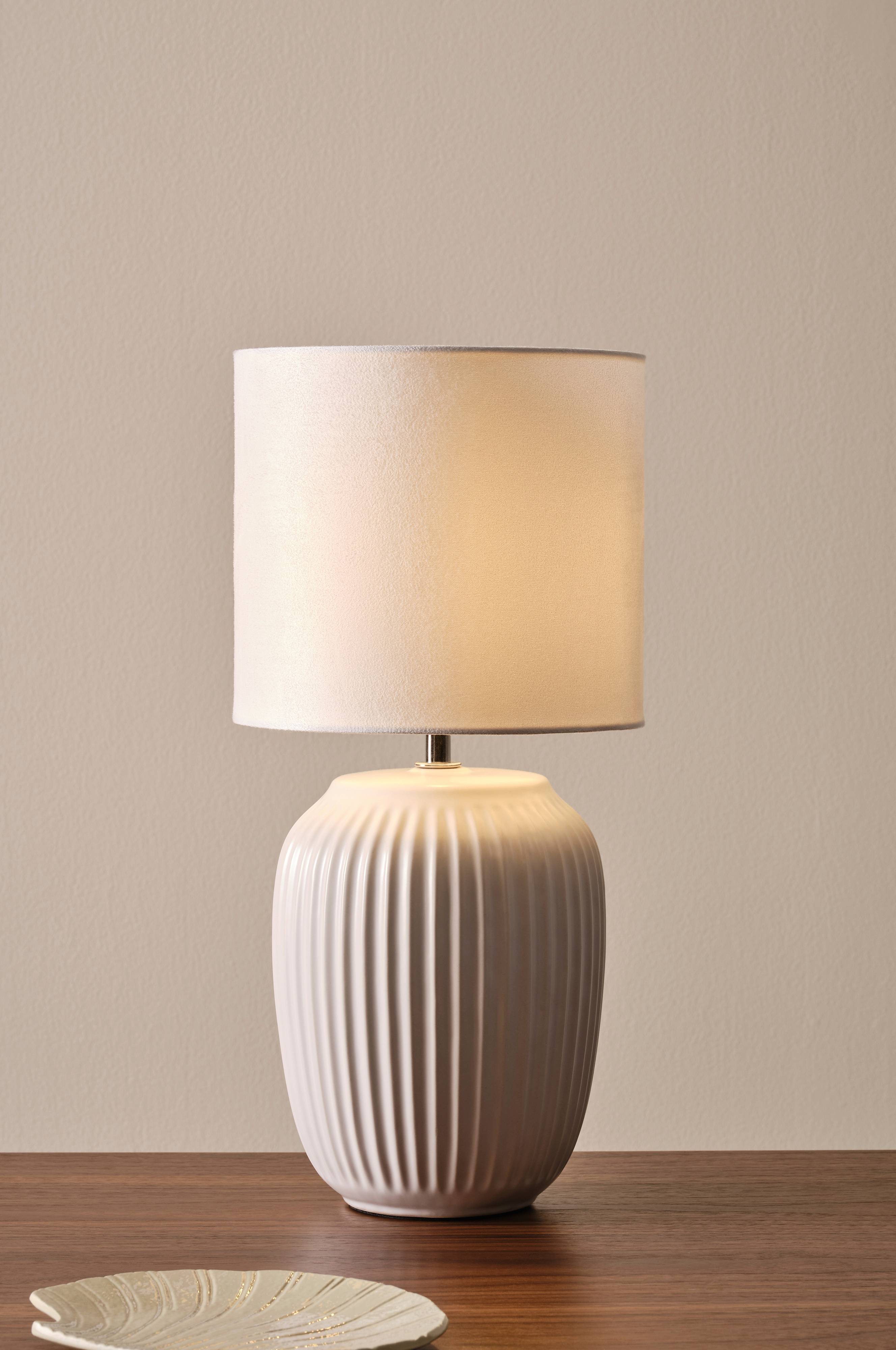 Tafellamp van matwitte keramiek met een lampenkap van fluweelviscose. Snoerlengte 1,5 m.
