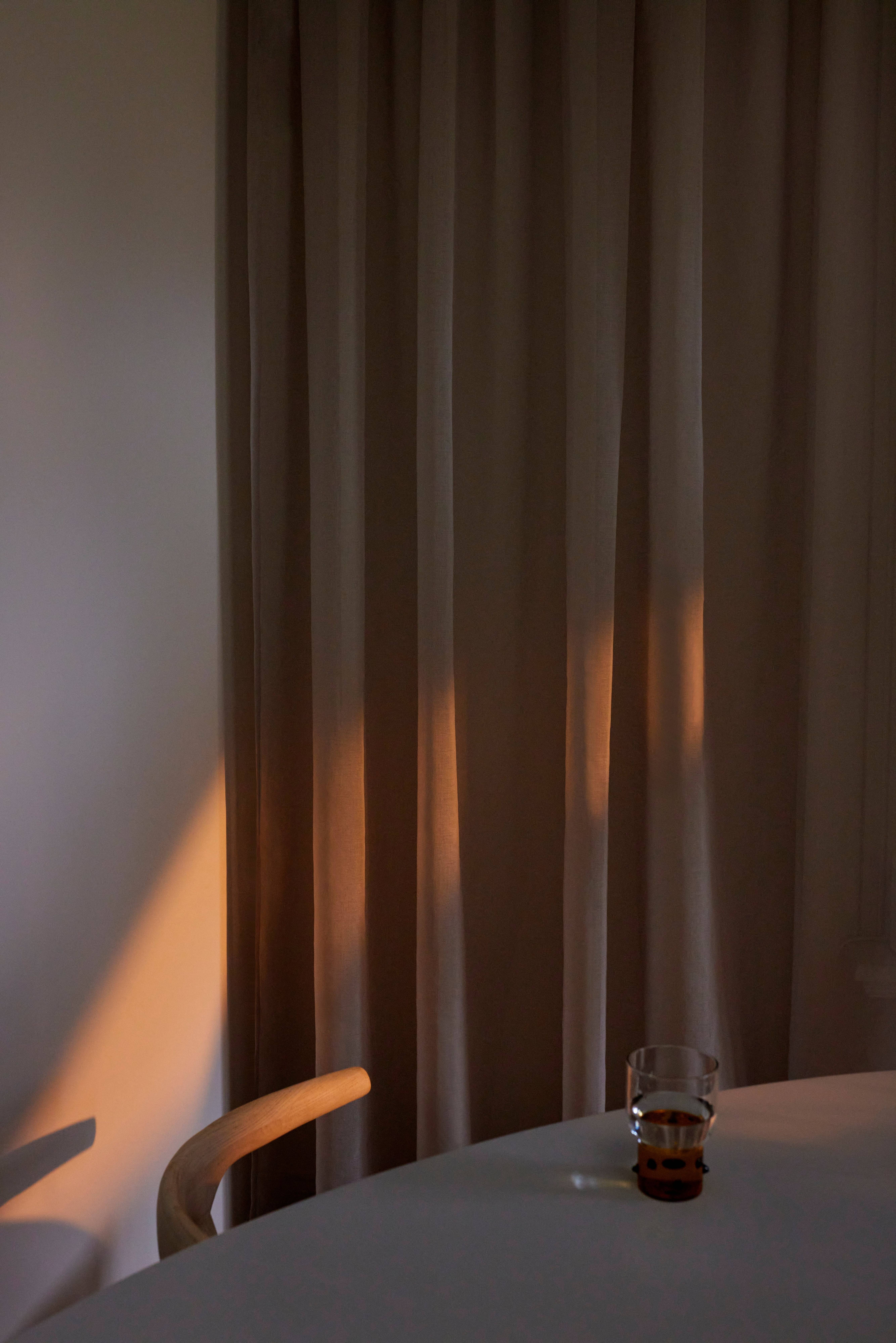 KIRA is een heerlijk transparant gordijn met een mooie, iets spaarzamere weving. Het licht filtert en valt zacht in de kamer, als je de zonnestralen wilt afschermen of de transparantie wilt beperken, kun je het gordijn dichttrekken en toch het licht binnenlaten. Het gordijn heeft een lichte drapering en je kunt het combineren met een zwaarder verduisterend gordijn voor een luxe hotelgevoel. Het zachte kleurenschema past goed bij het gevoel van de stof. Het KIRA gordijn is gemaakt van gecertificeerd gerecycled polyester. De lengtes hebben opgenaaide, transparante multifunctionele tape aan de bovenkant en het kan worden opgehangen met vingerhaken, een goot en een verborgen hanger.