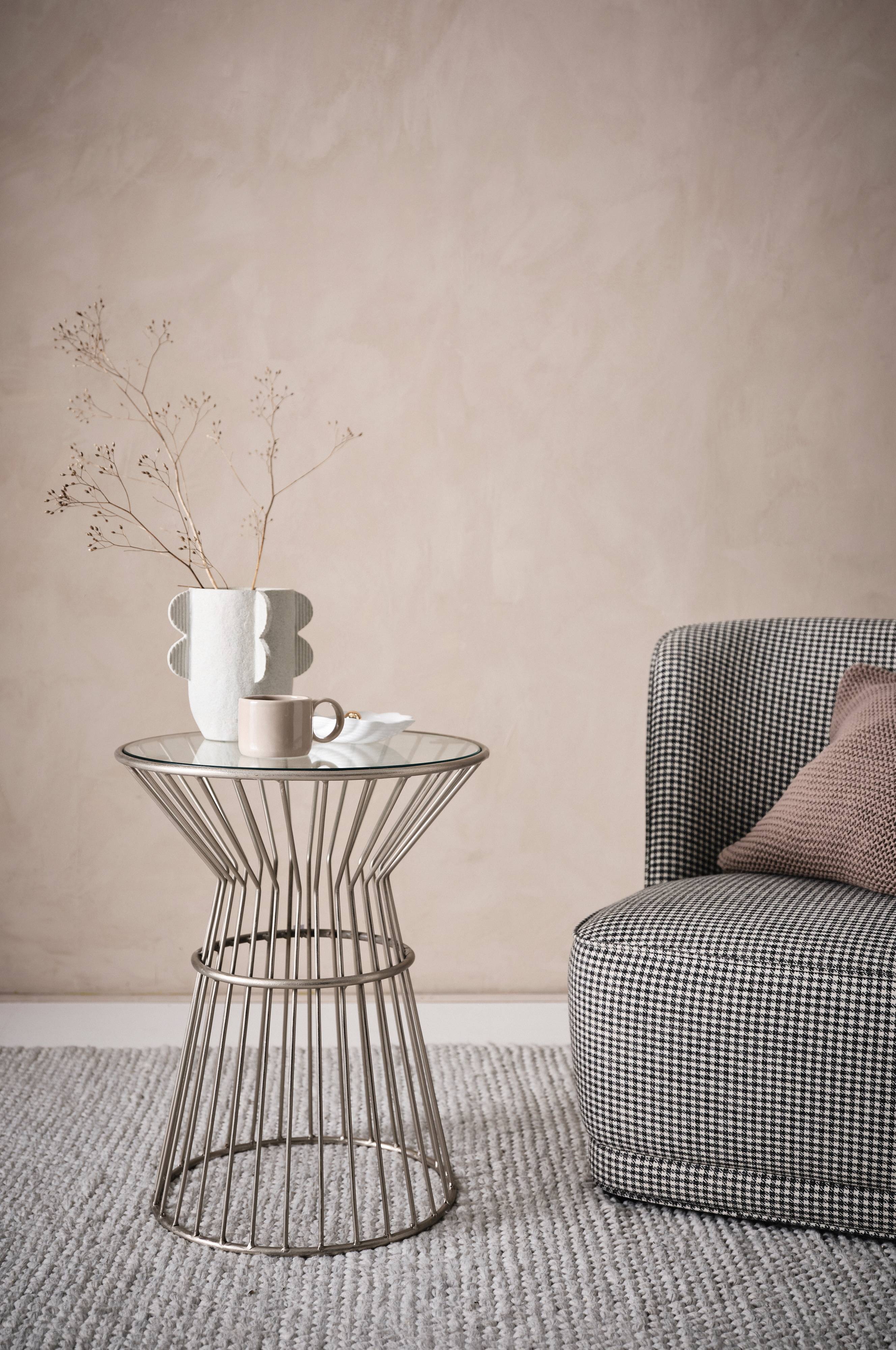 Een ronde bijzettafel naast je bank maakt je woonkamer compleet. LARINO heeft een luchtige uitstraling door het glazen tafelblad en het trendy onderstel van verchroomd metaal dat eronder zichtbaar is.