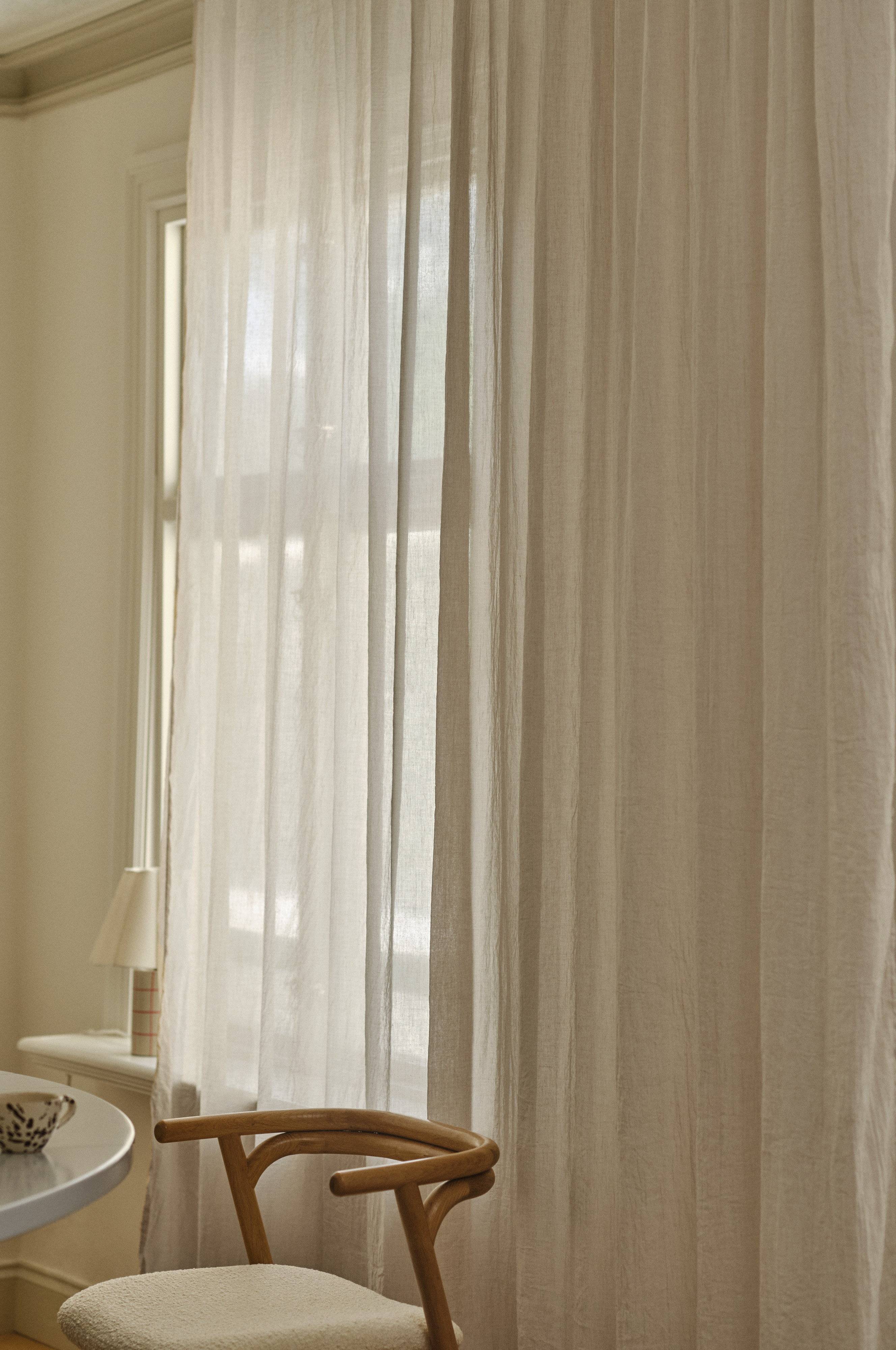 Het LAYER gordijn geeft elke kamer een zachte, luchtige uitstraling met zijn semi-transparante stof. Dit extra brede gordijn is gemaakt van 50% gerecycled polyester en laat natuurlijk licht binnen terwijl het privacy biedt. De neutrale kleur past moeiteloos bij verschillende interieurstijlen, waardoor het een veelzijdige aanvulling is voor moderne huizen. Het LAYER-gordijn is perfect voor woonkamers, slaapkamers of eethoeken en verfraait je ruimte met zachte elegantie.