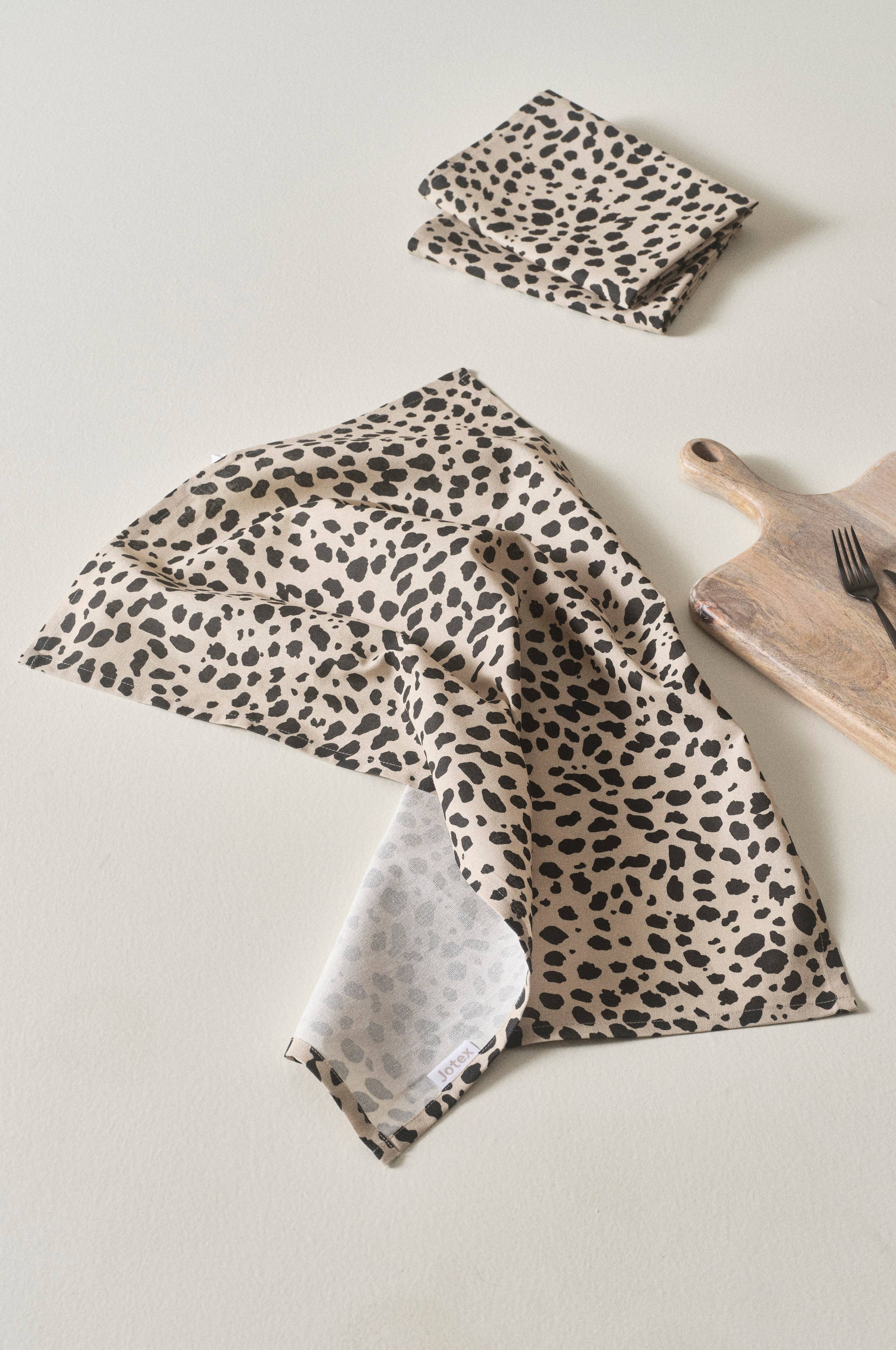 Een set van drie theedoeken met een mooi luipaarddessin geprint op geweven katoen.