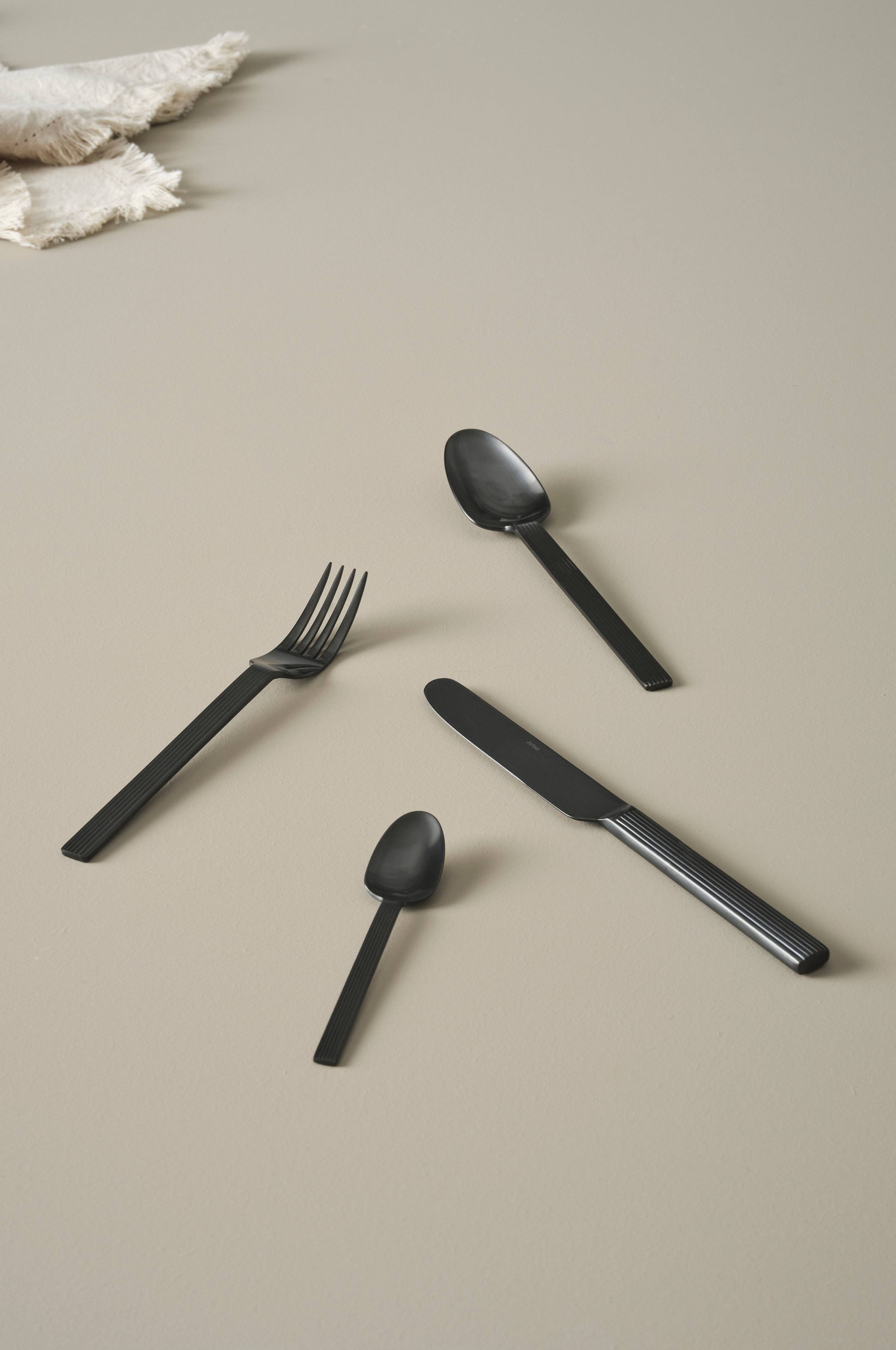 Een 24-delige bestekset in een klassiek model in een moderne uitvoering. Het bestek heeft een glanzende afwerking en alle delen hebben reliëfstrepen op het heft. Bestaat uit zes vorken, zes messen, zes lepels en zes theelepels. Een bestekset die bij verschillende gedekte tafels past, zowel in een moderne als traditionele stijl.