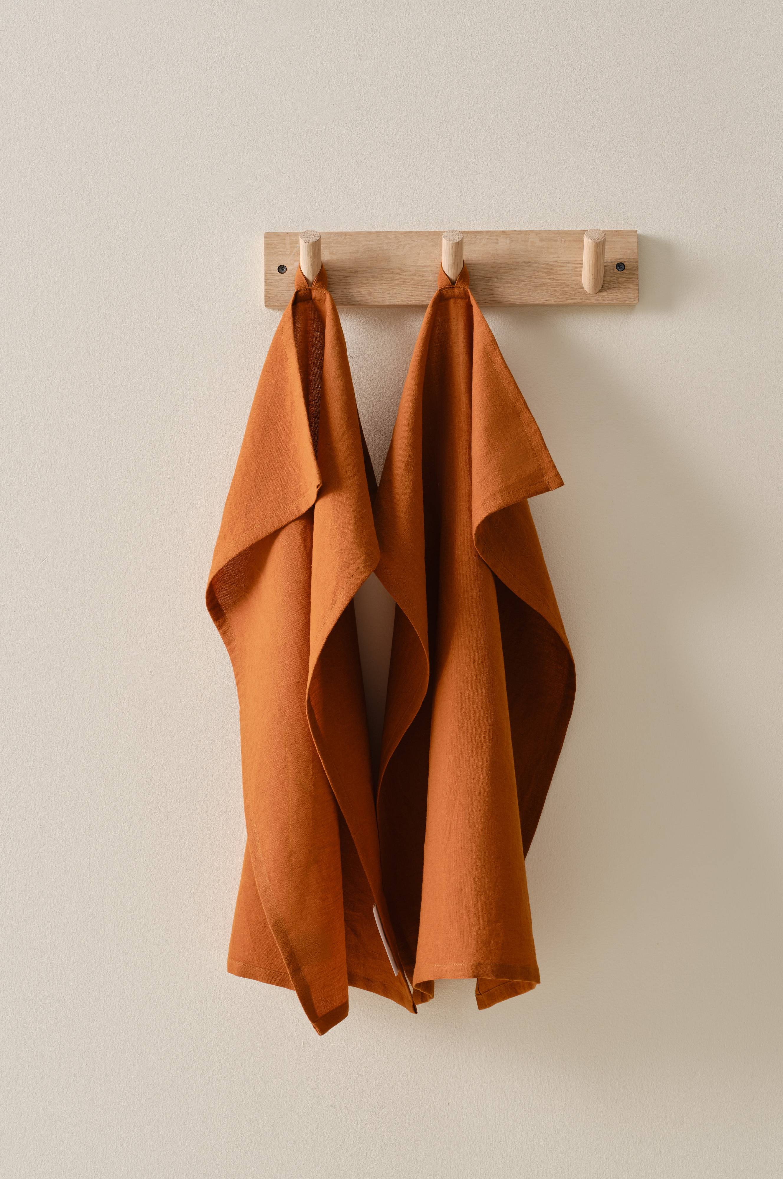 LINA 2-pack keukenhanddoeken zijn gemaakt van een mix van linnen en katoen, wat zorgt voor een zachte en soepele textuur. Hun effen weefsel met effen geverfde stof straalt een rustieke charme uit, perfect voor elke keukeninrichting. Na verloop van tijd wordt de natuurlijke schoonheid van linnen beter en krijgt je ruimte meer karakter. Deze handdoeken zijn verkrijgbaar in een rijke kleurenschaal en zijn zowel functioneel als esthetisch, waardoor ze ideaal zijn voor in je keuken.