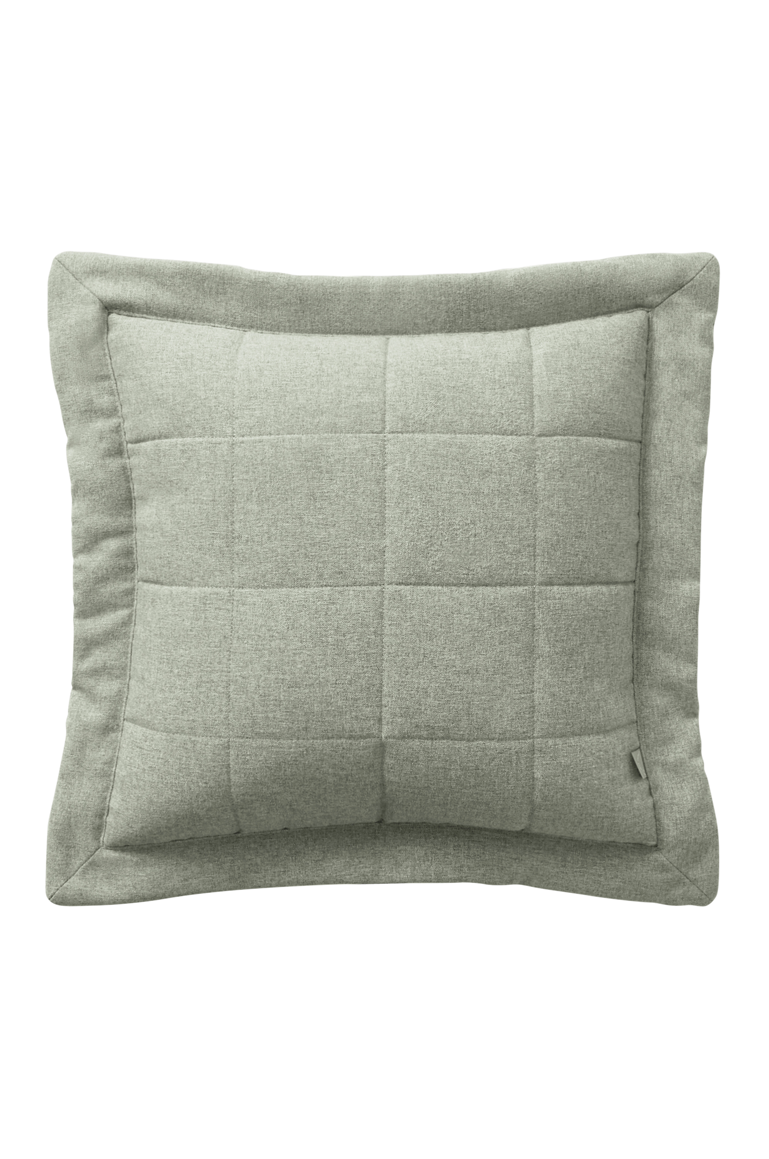 Een kussenhoes van polyester met een fijne textuur die als linnen aanvoelt. De kussenhoes is doorgestikt aan de voorkant. Ritssluiting aan de onderkant.