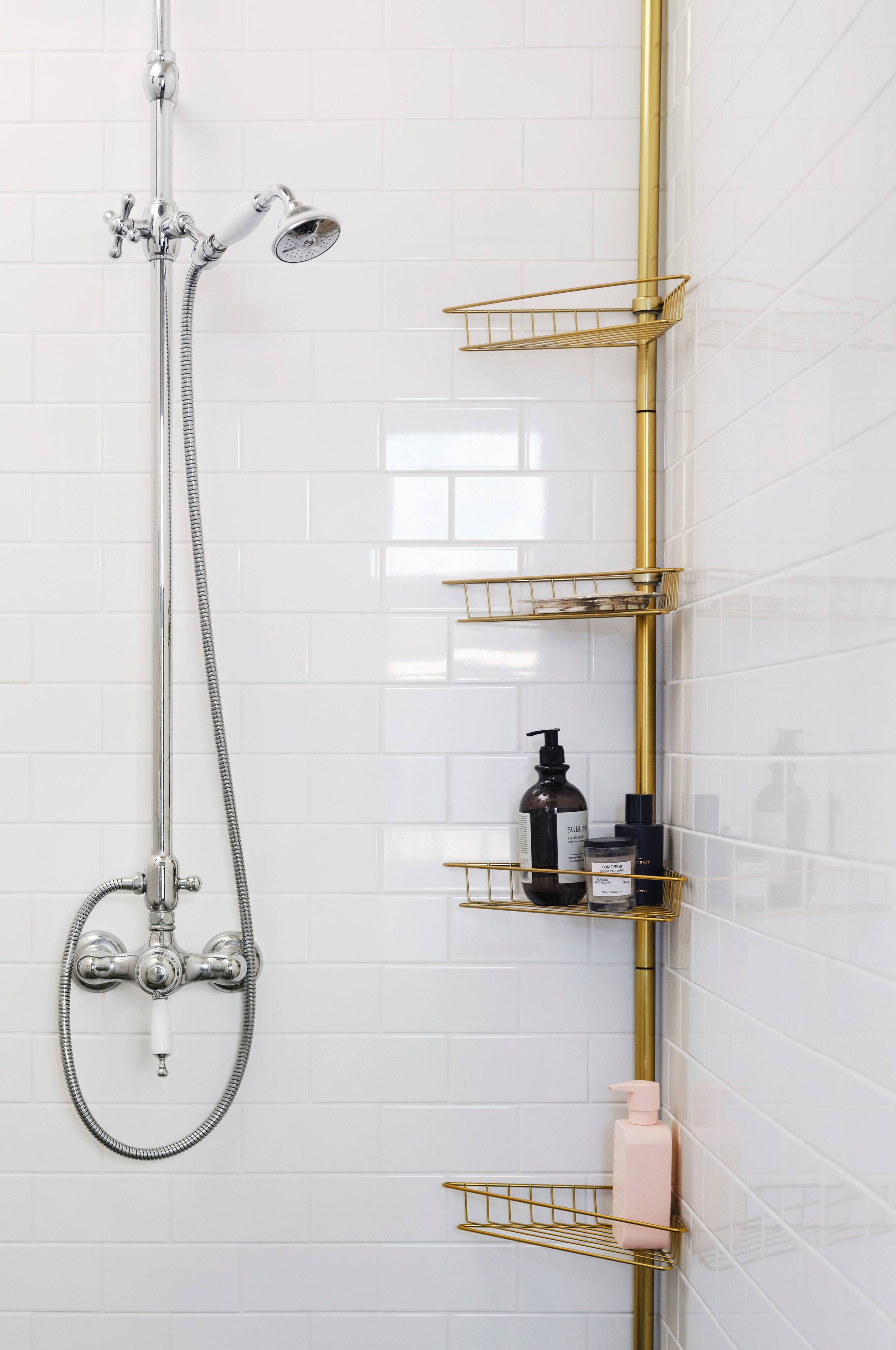 Praktische hoekplank voor de badkamer. Plaats de plank tussen de badrand en het plafond, of van vloer tot plafond. De telescopische stang zorgt voor een verstelbare hoogte en is eenvoudig te bevestigen. Flexibel naar eigen voorkeur met vier verwijderbare planken. Het is belangrijk om de meegeleverde montage-instructies te volgen bij het installeren van de plank voor stabiliteit.