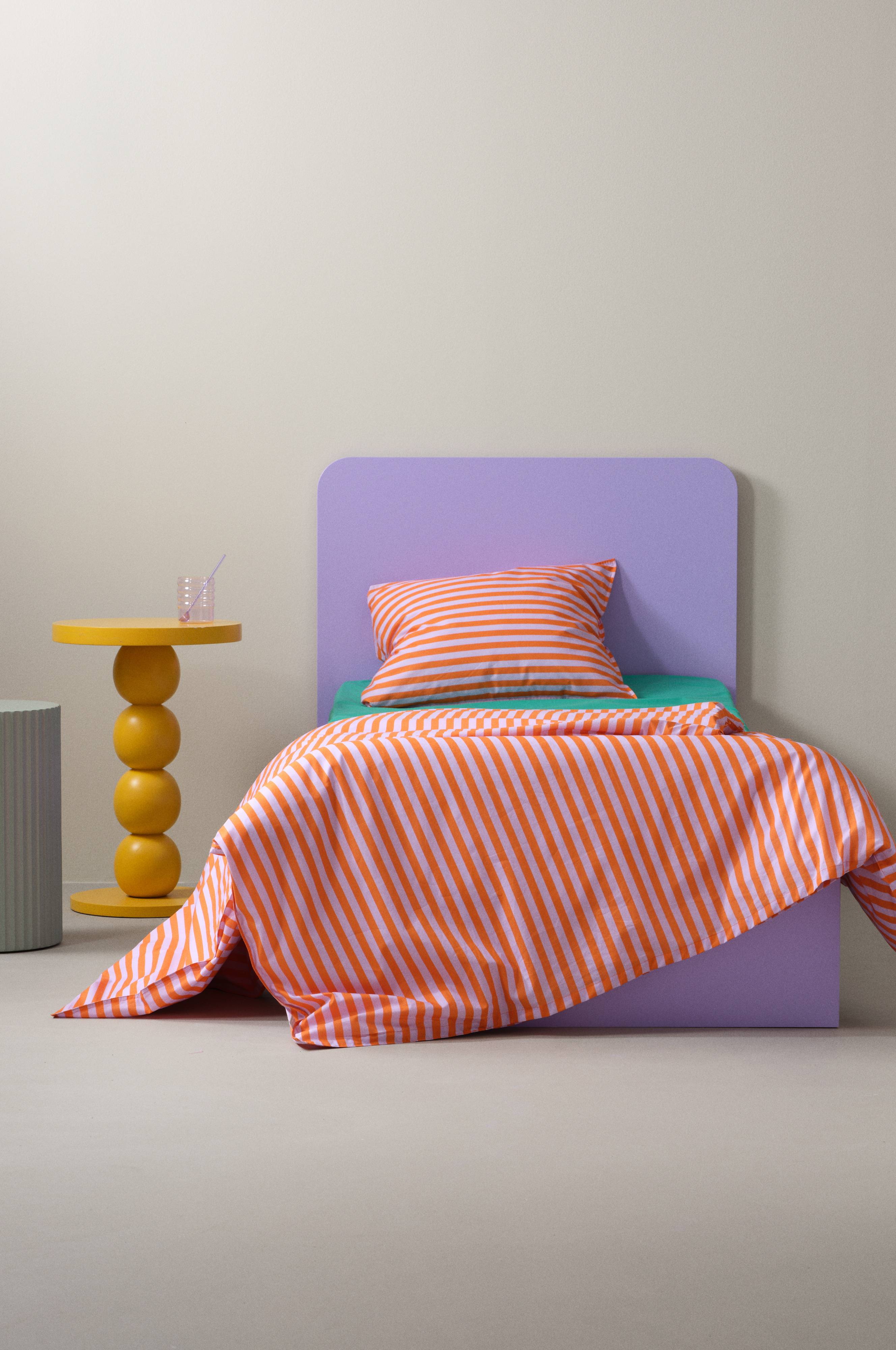 Een gestreept dekbedovertrek van biologisch katoen. Het beddengoed in de serie LOUSA is kleurrijk en de strepen zijn digitaal geprint wat zorgt voor een zachtere en meer geraffineerde print met heldere kleuren. Biologisch katoen is aangenaam om onder te slapen; het voelt koel en zacht aan. Draaddichtheid 180. (De draaddichtheid geeft het aantal draden aan per vierkante inch van een stof. Hoe hoger de draaddichtheid, hoe hoger de kwaliteit. Met uitzondering van linnen, dat voor het juiste resultaat vaak losser geweven wordt.)