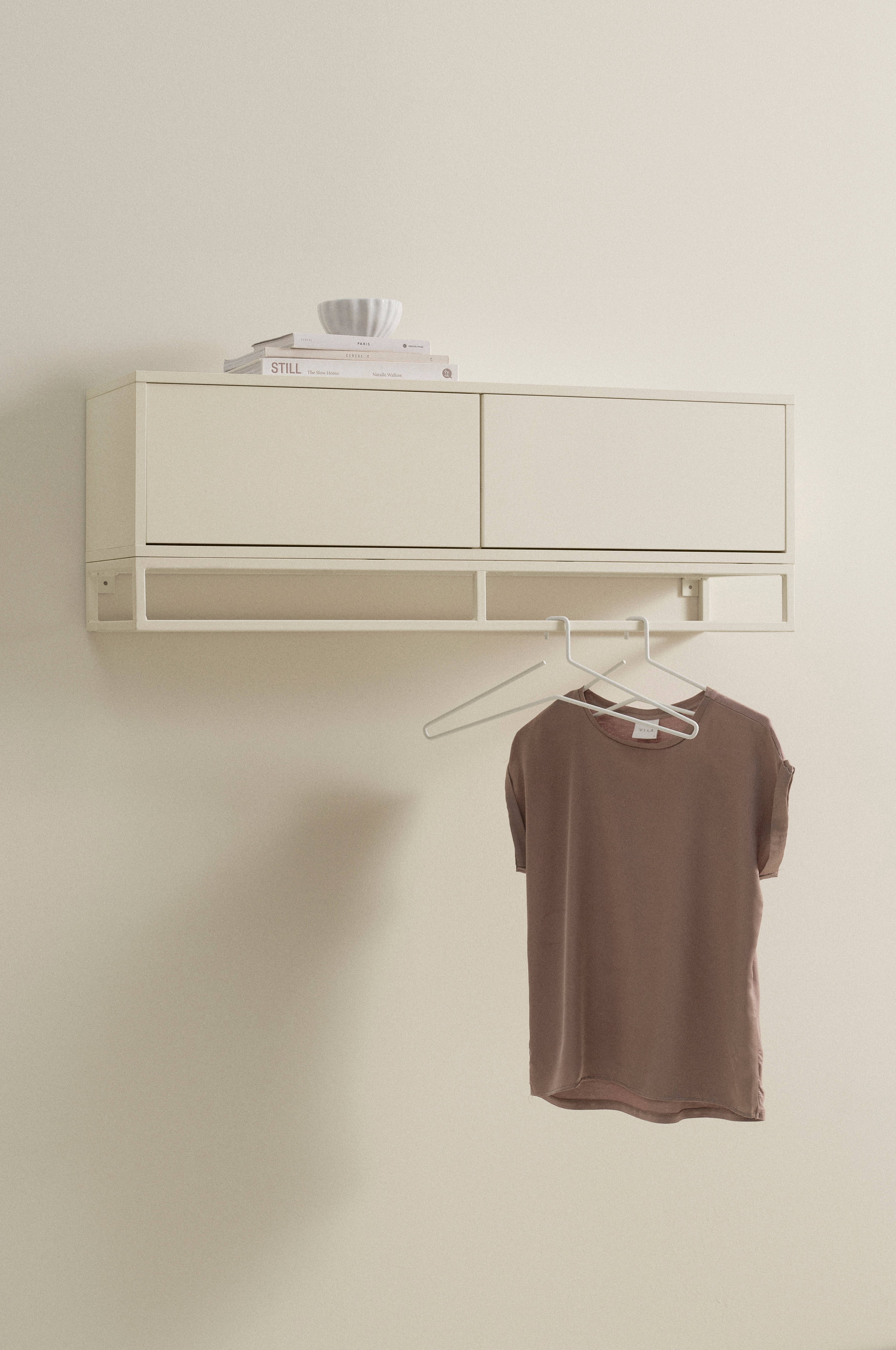 Een wandkast van mdf met een metalen onderstel. De strakke, stijlvolle wandkast heeft twee deurtjes die naar buiten openslaan en in het midden samenkomen. De deuren worden met een pushfunctie geopend. Hierdoor is de kast helemaal glad zonder handgrepen en zijn de deuren toch eenvoudig te openen. De wandkast staat mooi in de hal. Zet hem op het LYCKEBY bankje voor een matchend halmeubel. De delen zijn van mdf afgewerkt met een lak op waterbasis. Het metalen onderstel heeft vierkante profielen met een poedercoating. Enige montage is vereist. Montage-instructies worden meegeleverd.
