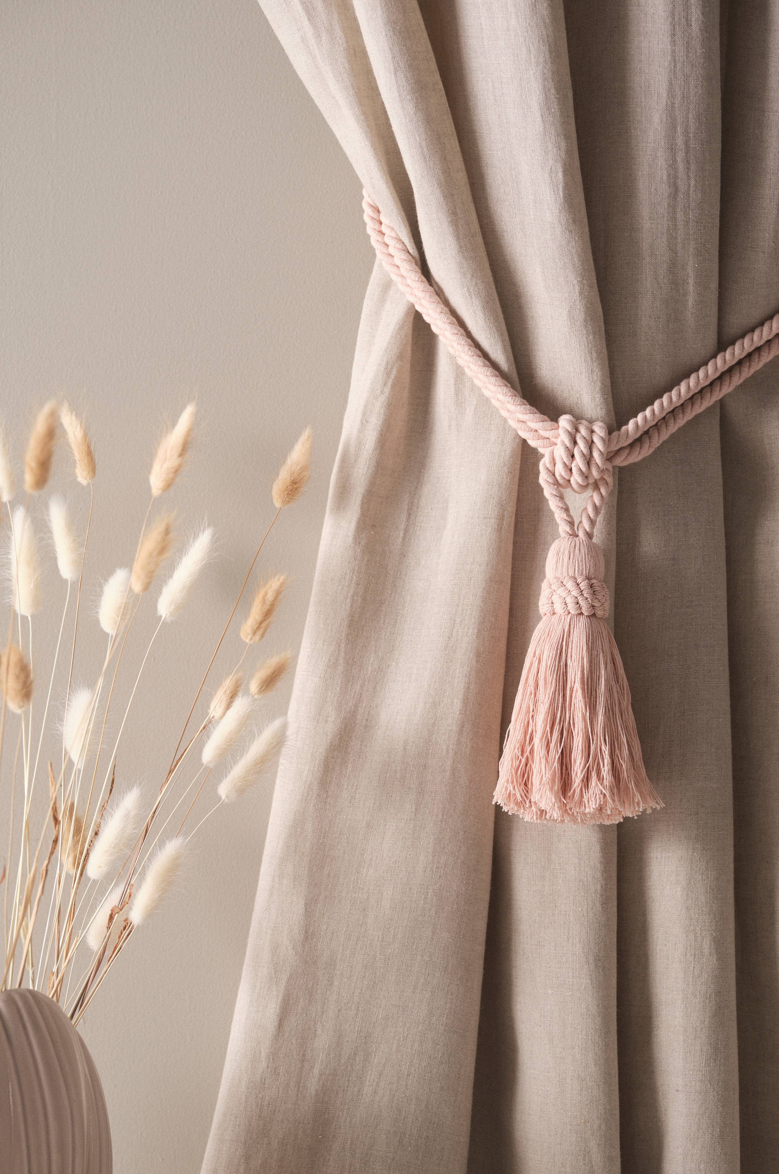 Hang je gordijnen mooi op met behulp van embrasses met kwast. MANON is een iets kleiner model gemaakt van mat katoen.