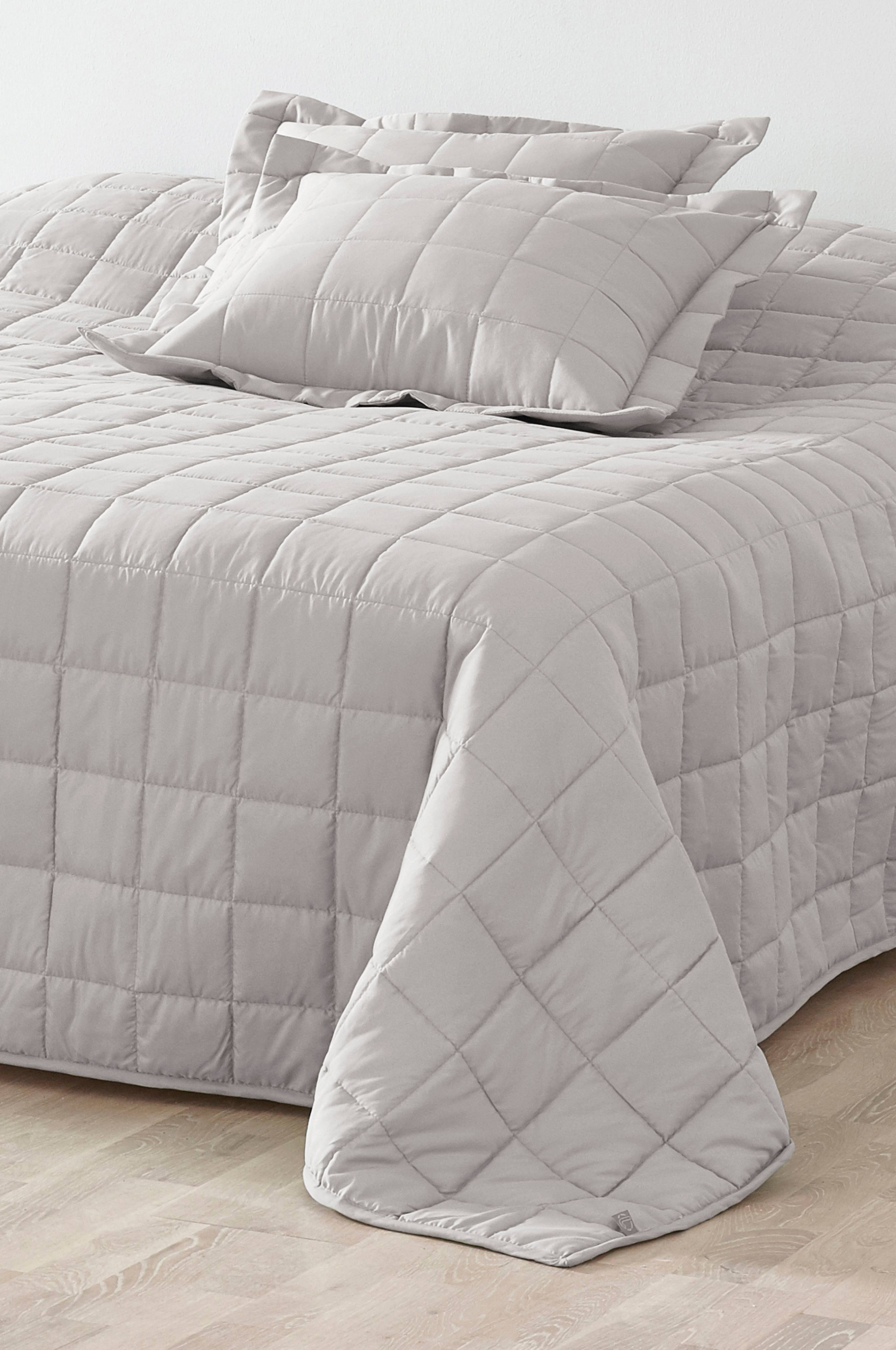 Een tweepersoonssprei van polyester met een doorgestikt ruitdessin en een heerlijk zachte afwerking. De sprei is aan twee kanten te gebruiken en heeft een lichte en een donkere zijde in verschillende, makkelijk te combineren kleuren. Kussenhoes niet inbegrepen, wordt apart verkocht.