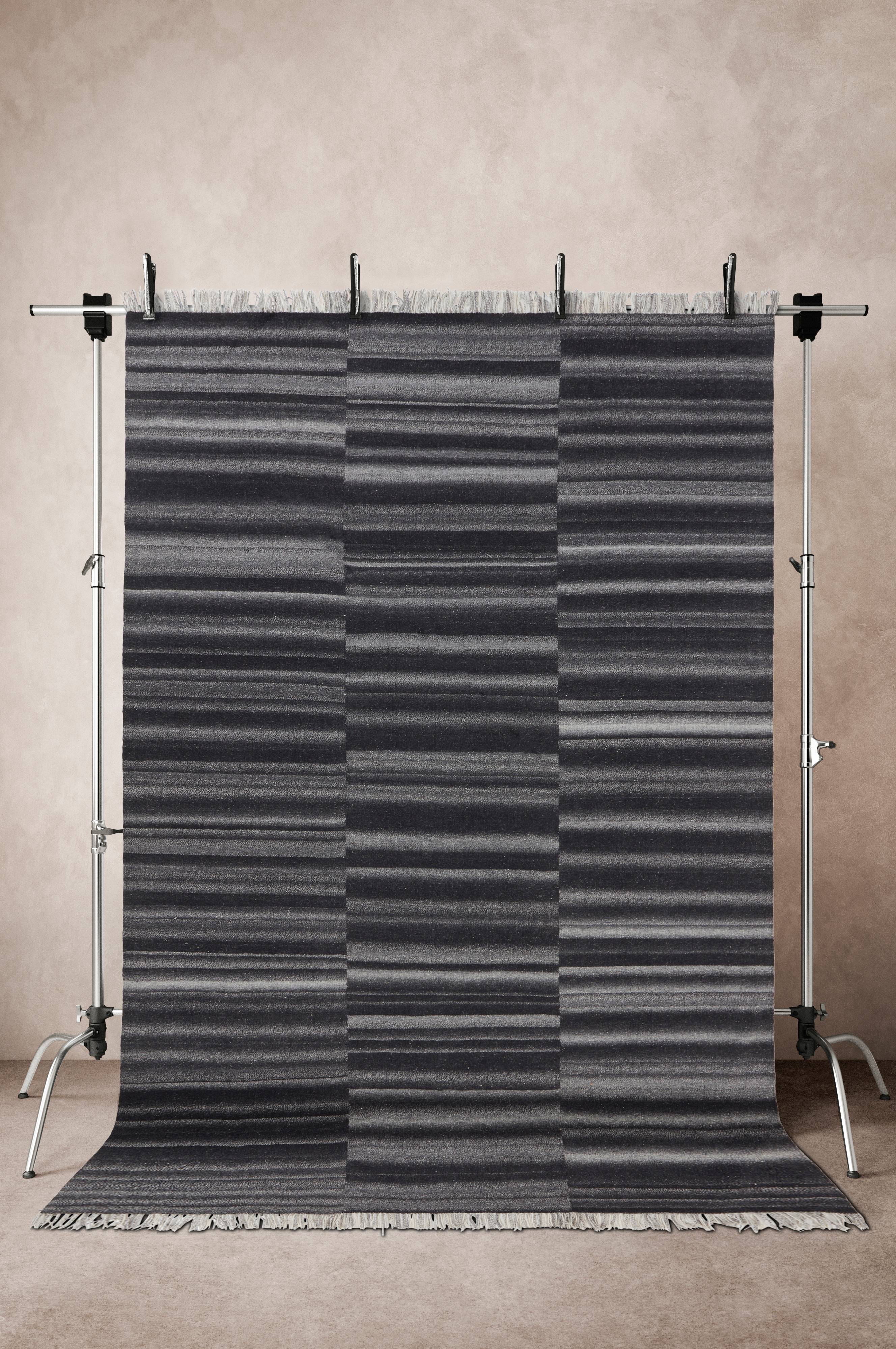 Een mooi vloerkleed van wol, viscose en polyester. Het vloerkleed heeft decoratieve strepen met zachte overgangen in mooie kleuren. Smalle, getwijnde franje aan de korte zijden. Het vloerkleed is dun en soepel en de wol zorgt voor warmte en een natuurlijke en rustieke uitstraling. Lengte franje 6,3 cm. Dikte 0,7 cm. 1500 gr./m².