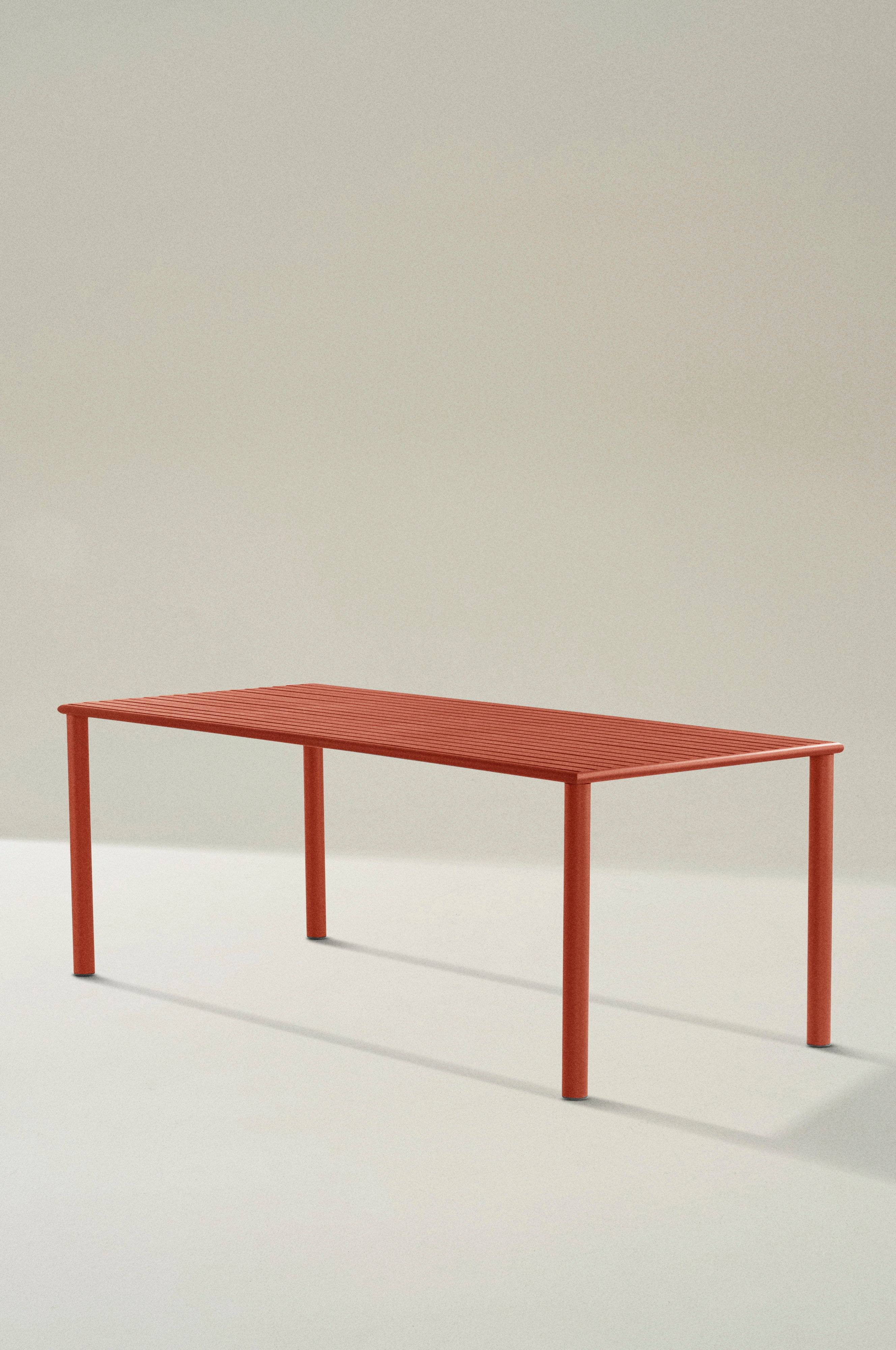 Aluminium eettafel met poedercoating en een matte afwerking die niet schittert in het zonlicht. MENTON kan buiten staan en maakt het buitenleven gemakkelijker. Je hoeft niet te sjouwen zodra je buiten wilt zitten. Het meubel is netjes en geeft een fijn gevoel op het terras of patio. Laag gewicht.