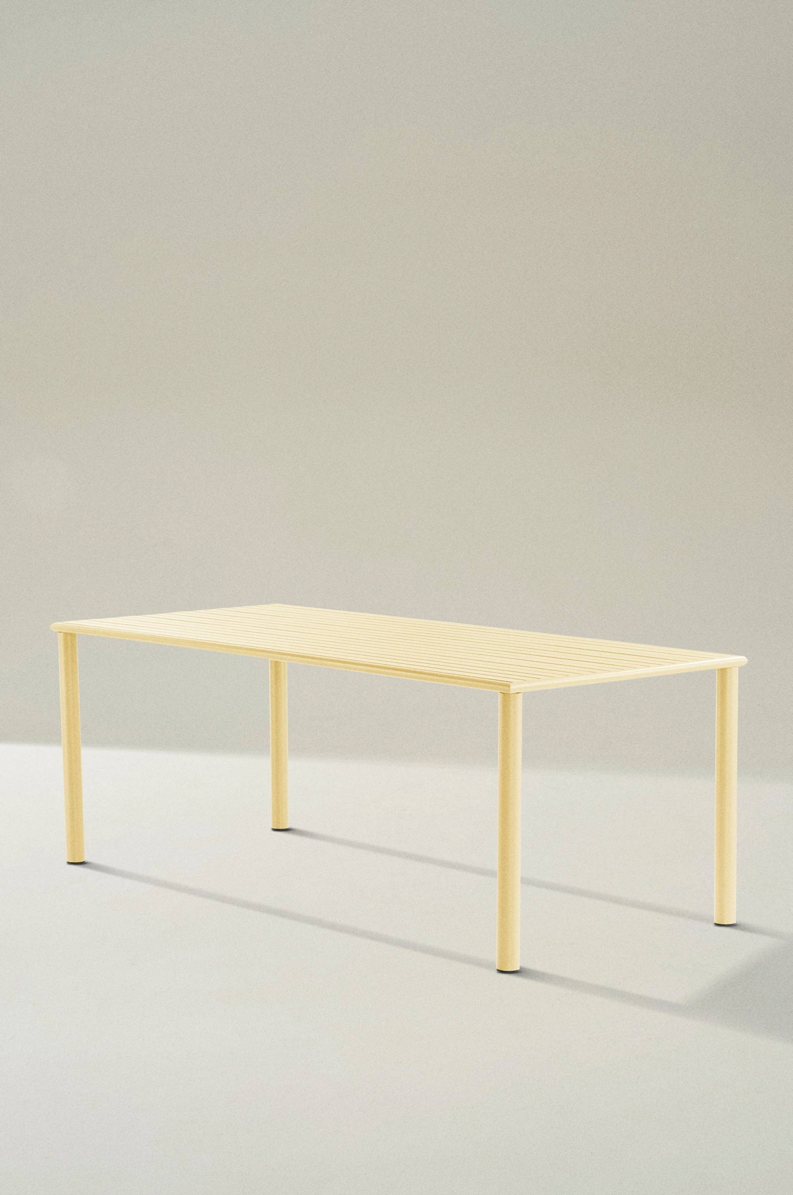 Aluminium eettafel met poedercoating en een matte afwerking die niet schittert in het zonlicht. MENTON kan buiten staan en maakt het buitenleven gemakkelijker. Je hoeft niet te sjouwen zodra je buiten wilt zitten. Het meubel is netjes en geeft een fijn gevoel op het terras of patio. Laag gewicht.