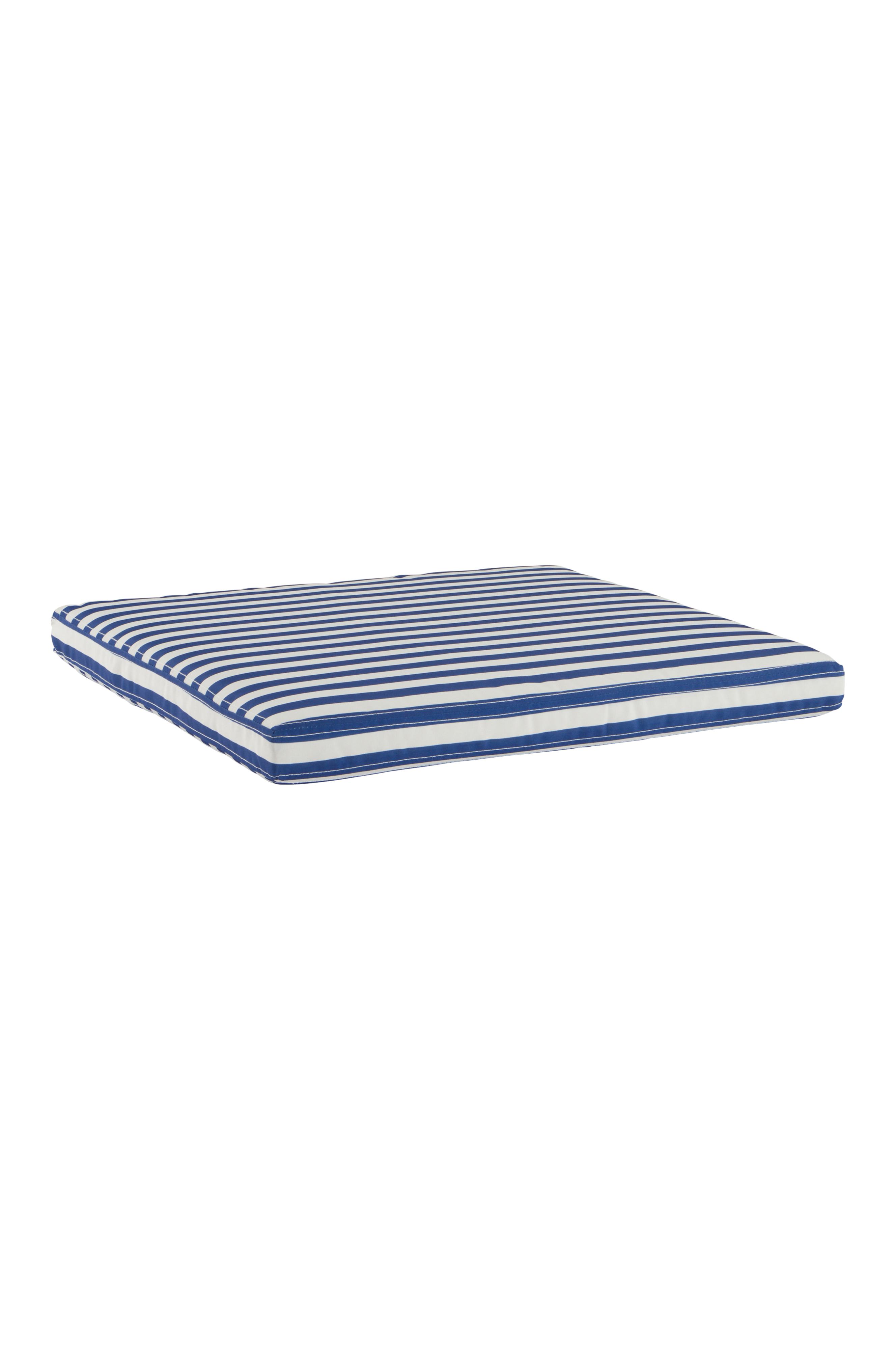 Een gestreept zitkussen voor tuinmeubels. De stof is gemaakt van polyester met een geprint dessin en een waterafstotende coating. Het zitkussen heeft een schuimvulling. De bekleding heeft een ritssluiting en is afneembaar. De stof heeft een slijtvastheid van 30.000 Martindale.