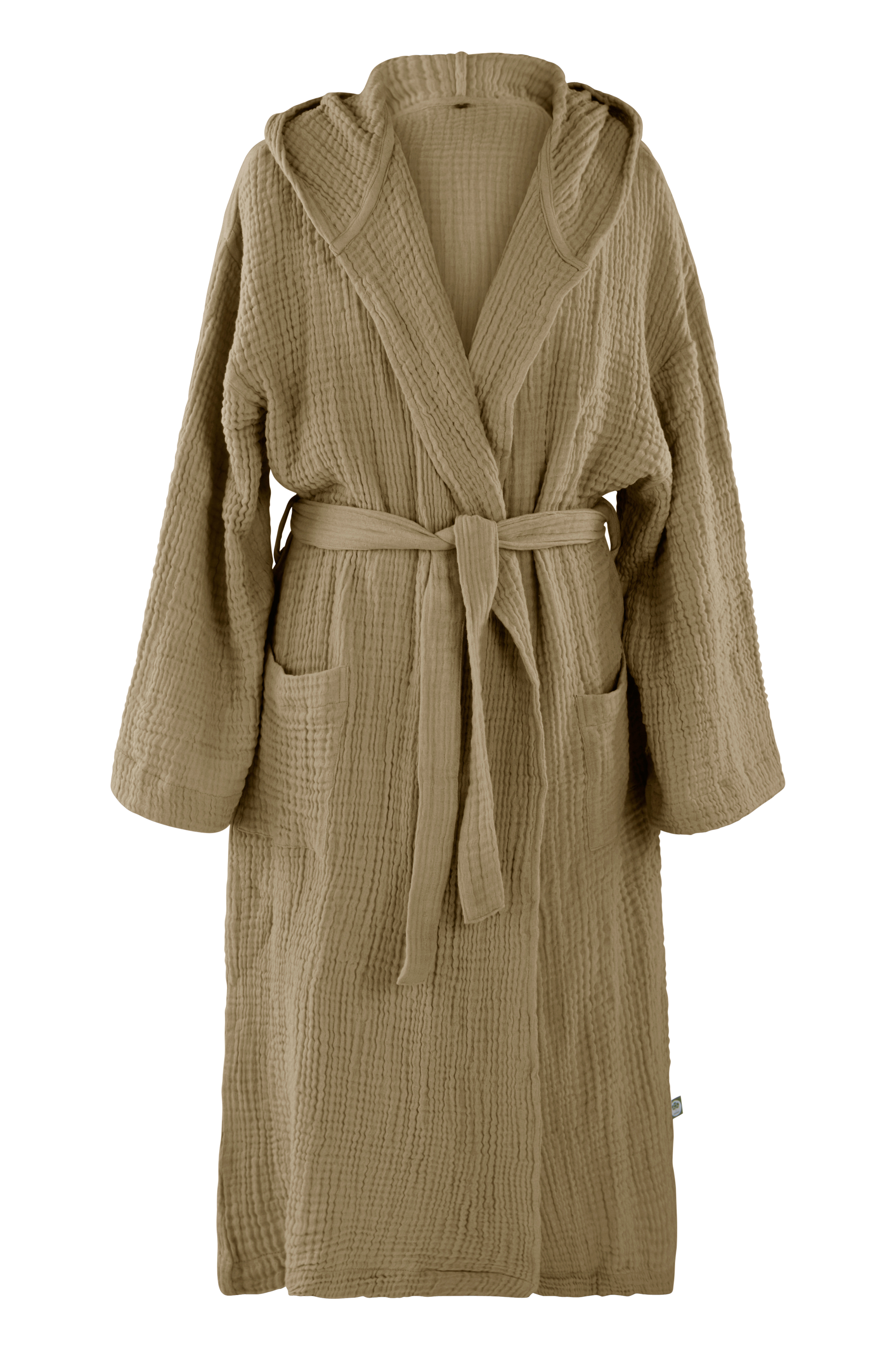 Een lange kimono van heerlijke katoenen mousseline. De fijne mousseline kwaliteit is gemaakt van geverfd garen, is heel bestendig en heeft een stonewashbehandeling ondergaan voor een heerlijk zacht gevoel. Een comfortabel model met een strikband in de taille en twee zakken voor. Gewicht 180 gr./m².