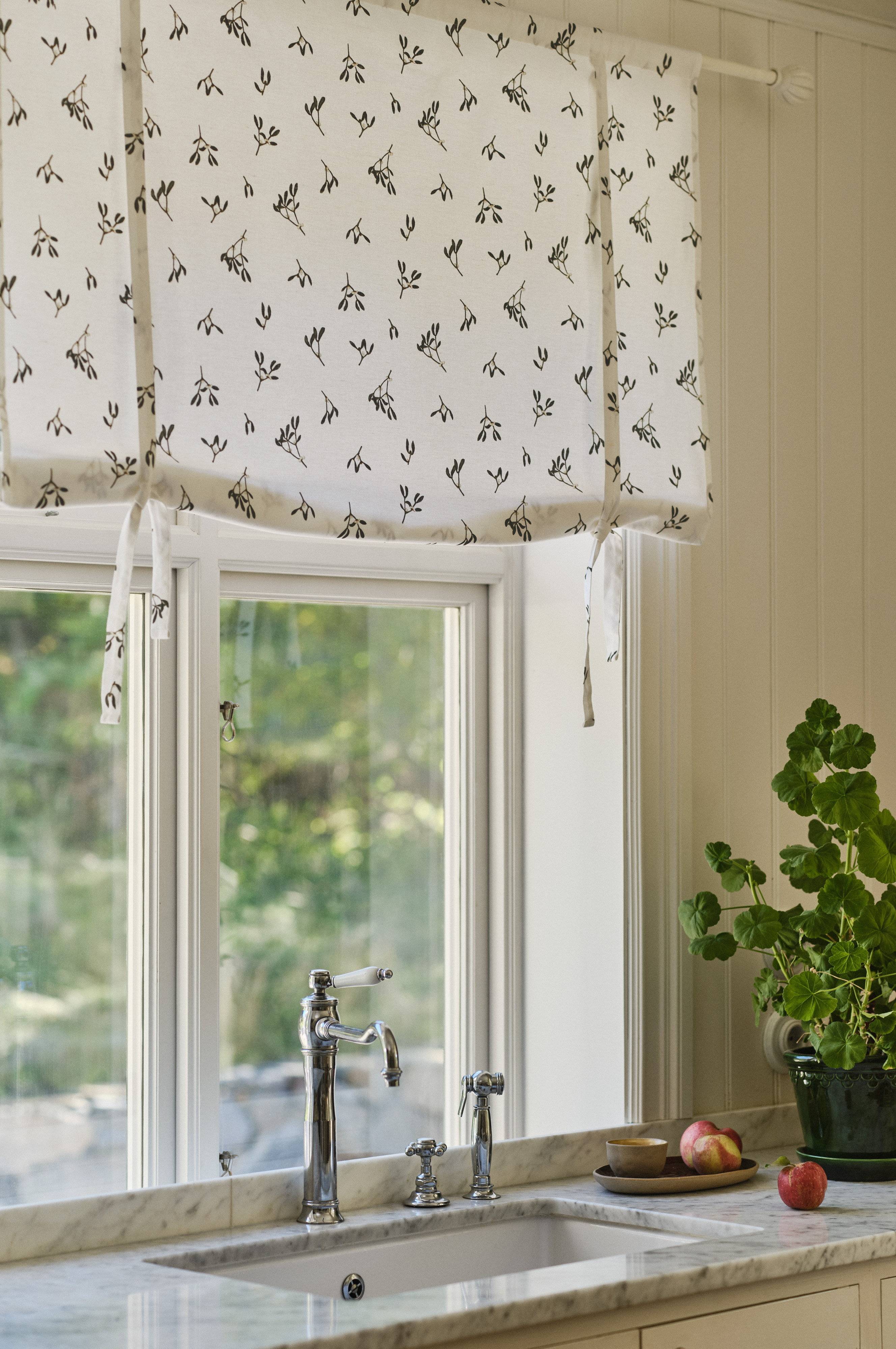 MISSY rolgordijn van zacht katoen en linnen. MISSY heeft een fijne pigmentprint op een witte achtergrond. Het gordijn is gewassen voor extra zachtheid en zorgt het hele jaar door voor een gezellige charme, terwijl het ook een knisperend kerstgevoel geeft. Het rolgordijn kan eenvoudig worden aangepast aan je voorkeur voor transparantie. Hangt aan een gewone gordijnroede. De hoogte is verstelbaar met linten.