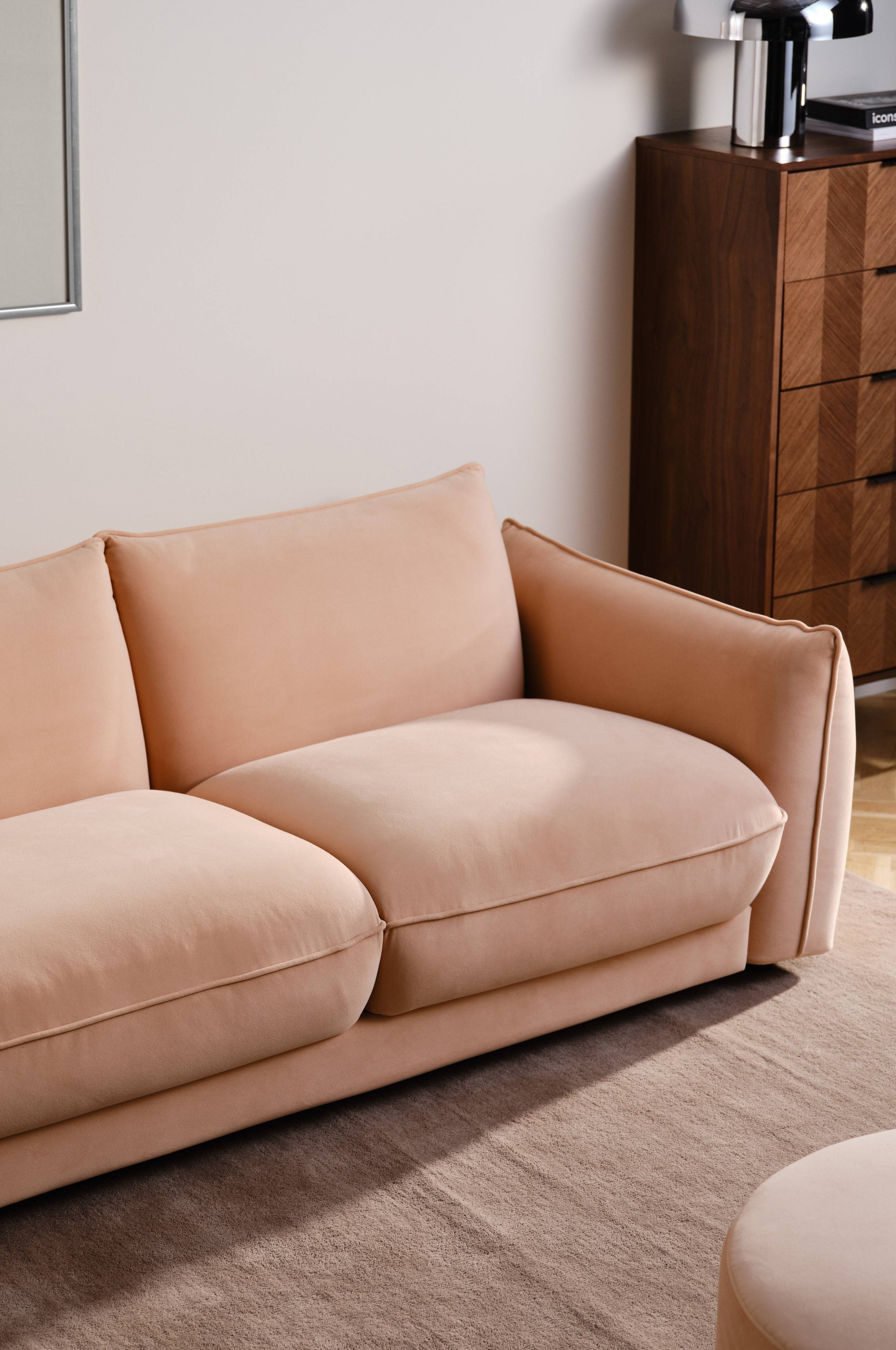 De MOLTON bank nodigt uit tot ontspanning met zijn ruime 3-zits ontwerp, perfect voor elke moderne woonruimte. De ronde vormen en luxueuze fluwelen stof bieden een uitnodigende esthetiek en combineren comfort met eigentijdse flair. Grote, mollige kussens zorgen voor een uitstekende ondersteuning van de zitting, waardoor het ideaal is voor zowel loungen als gezellig samenzijn. Het aantrekkelijke en ontspannen ontwerp past bij verschillende inrichtingsstijlen en voegt een vleugje moderne elegantie toe aan je huis. Ervaar de perfecte balans tussen vorm en comfort met de MOLTON bank.