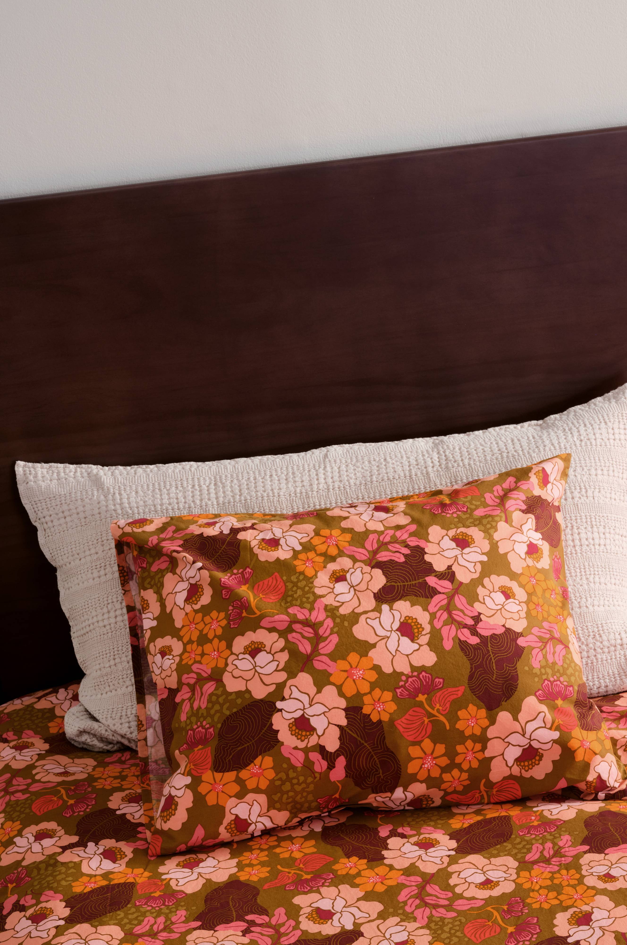 Het MONAH kussensloop brengt een retrogevoel in je slaapkamer met zijn met pigment bedrukte bloemenpatroon. De enzymatisch gewassen textuur zorgt voor een zacht en behaaglijk gevoel en is gemaakt van biologisch katoen. Perfect voor mensen die houden van een trendy inrichting met een nostalgische twist, dit product brengt stijl in balans met gezellig comfort voor je huis.