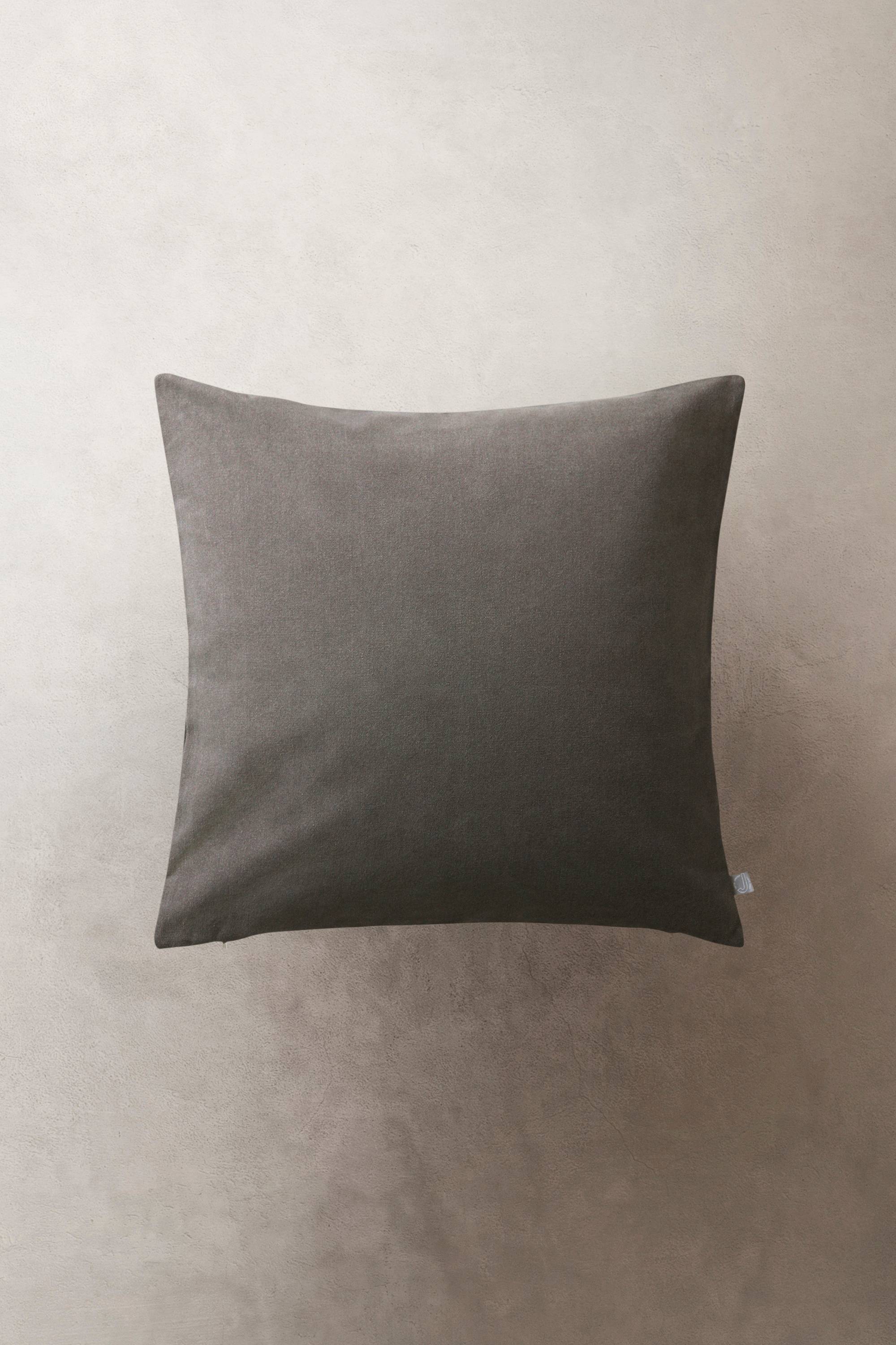 Een effen kussenhoes van een zachte katoenmix met gerecycled katoen. Ritssluiting aan de onderkant.