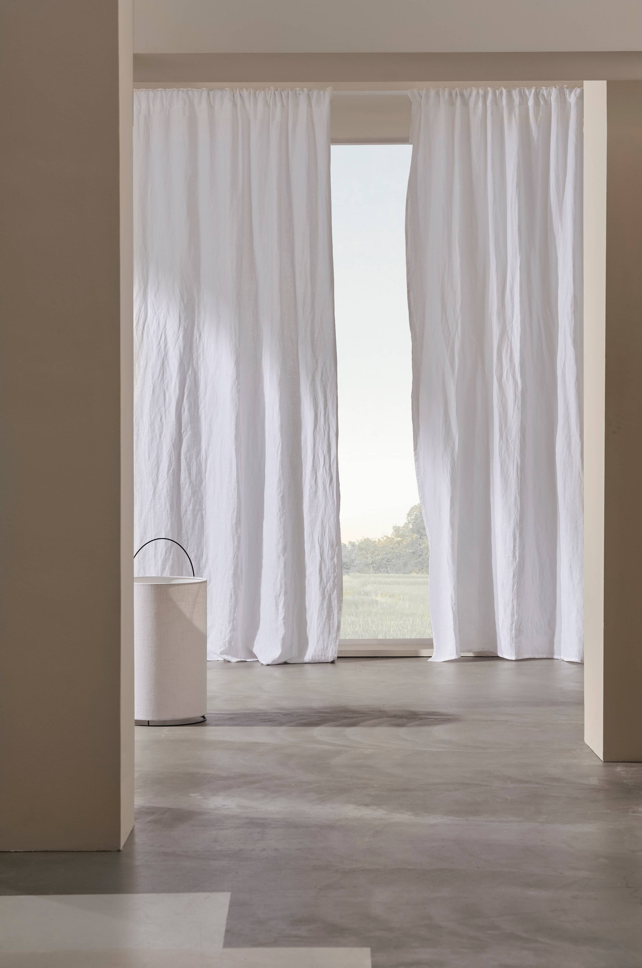Twee gordijnen van 100% linnen met vastgestikt multifunctioneel gordijnband. Het gordijn kan met vingerhaken, roedetunnel of blinde lussen worden opgehangen. Linnen heeft door de structuur en het aangename gevoel een rustieke, natuurlijke uitstraling. De zachte kleurstelling versterkt die natuurlijke look.