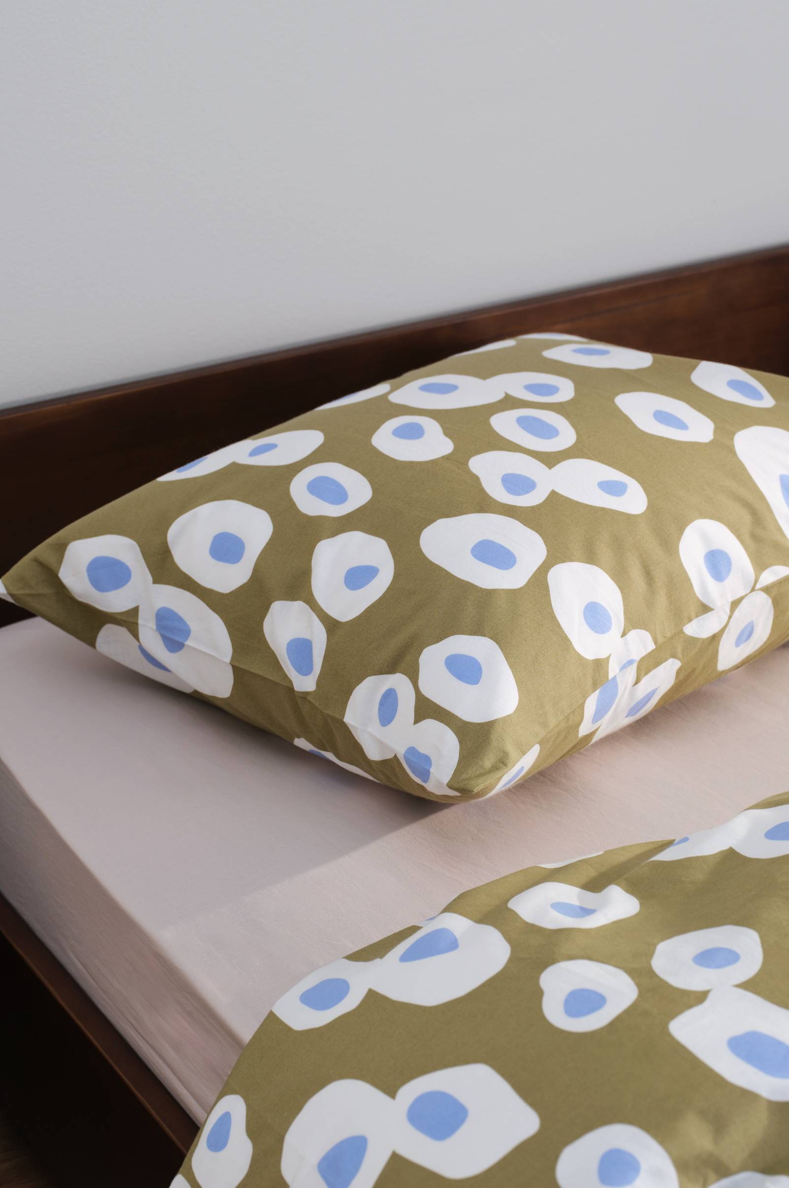Het OVO kussensloop geeft een speels tintje aan je slaapkamerinrichting met zijn unieke pigmentgeprinte patroon van Maria Carlberg. Dit ontwerp is geïnspireerd op gebakken eieren en geeft je kamer een leuke, artistieke uitstraling. Het OVO kussensloop is gemaakt van biologisch katoen en toont niet alleen creativiteit, maar biedt ook comfort. Perfect voor wie een persoonlijk tintje aan zijn interieur wil geven.