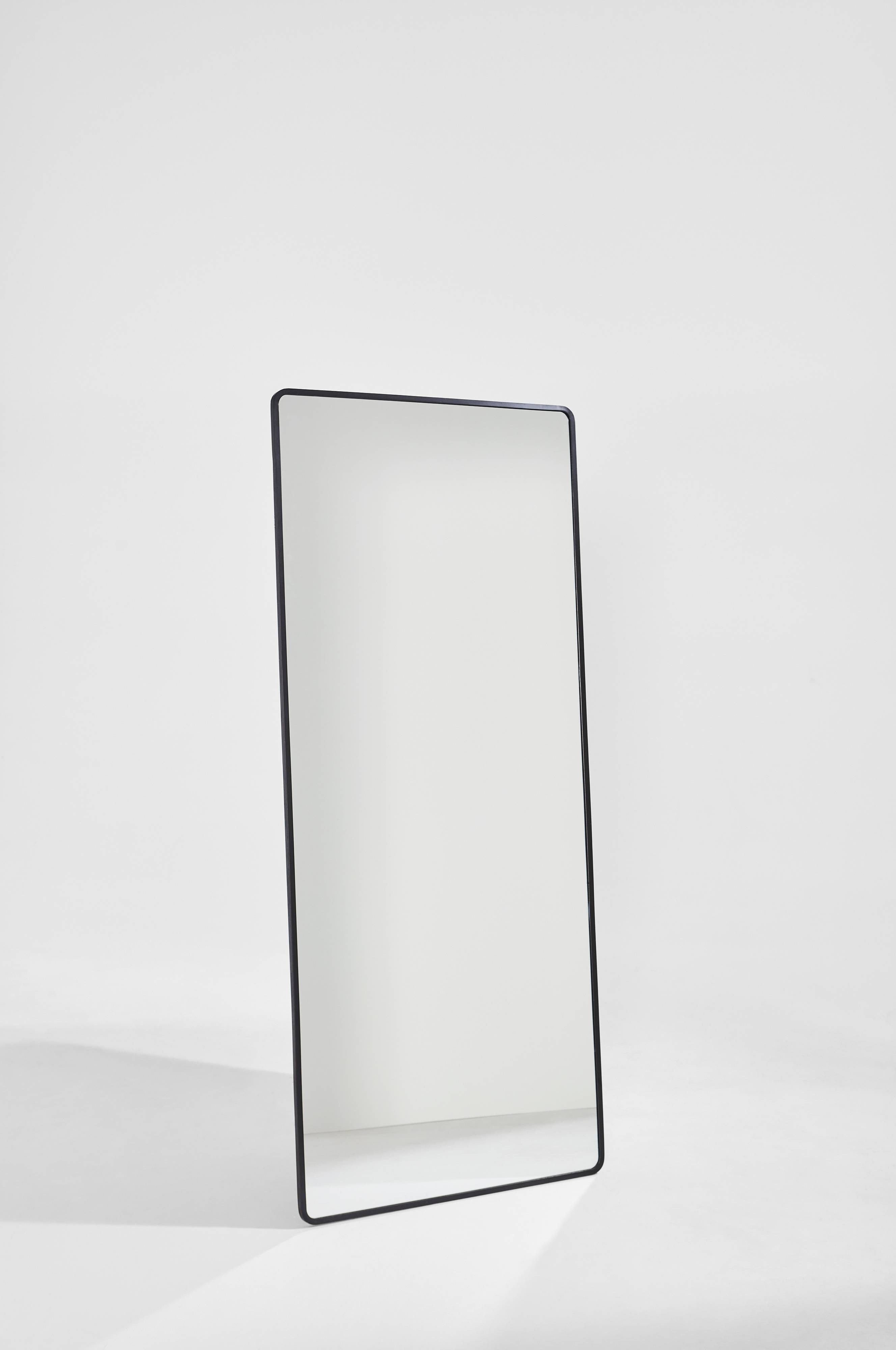 Een spiegel die even mooi als bruikbaar is. De smalle, stijlvolle, zwarte lijst met afgeronde hoeken maakt de spiegel bijzonder. De achterkant van de spiegel is van mdf geproduceerd van FSC-gecertificeerd hout. Aan de achterkant zitten metalen ophangoogjes langs twee zijden. Zo kun je zelf kiezen of je de spiegel horizontaal of verticaal ophangt. De lijst is van gepoedercoat metaal en omrandt de spiegel op een subtiele manier. Hang Quinn horizontaal boven de bank om de woonkamer ruimer en lichter te laten lijken of geef jezelf een luxe spiegel waarin je jezelf van top tot teen kunt zien, bijvoorbeeld in je walk-incloset.