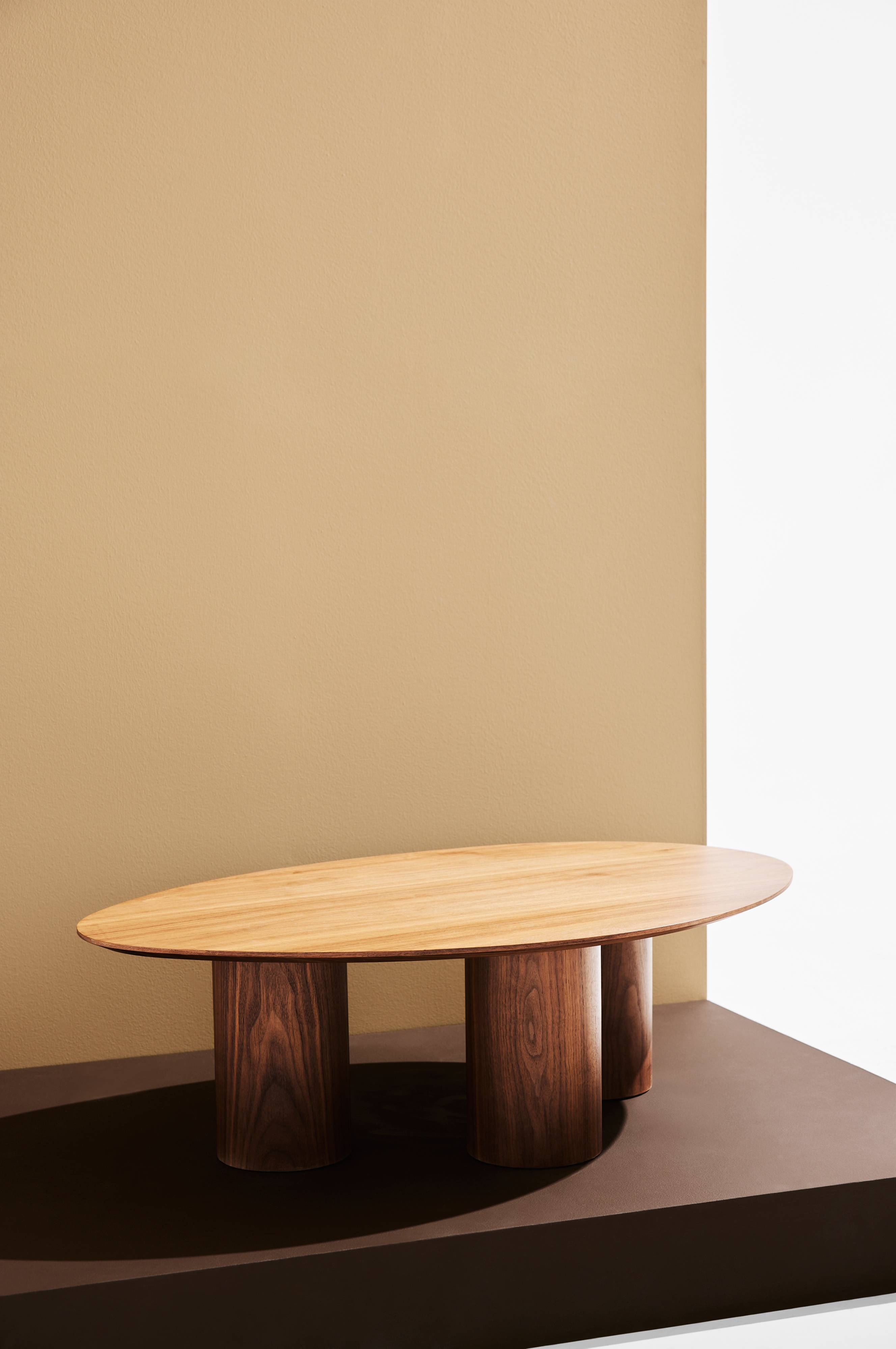 Combineer de salontafel gerust met bijzettafels uit dezelfde collectie. De tafels zijn gemaakt van FSC gecertificeerd MDF met walnoot of essen fineer. Het fineer is een natuurproduct en verschilt in kleur en nerf tussen de verschillende producten.