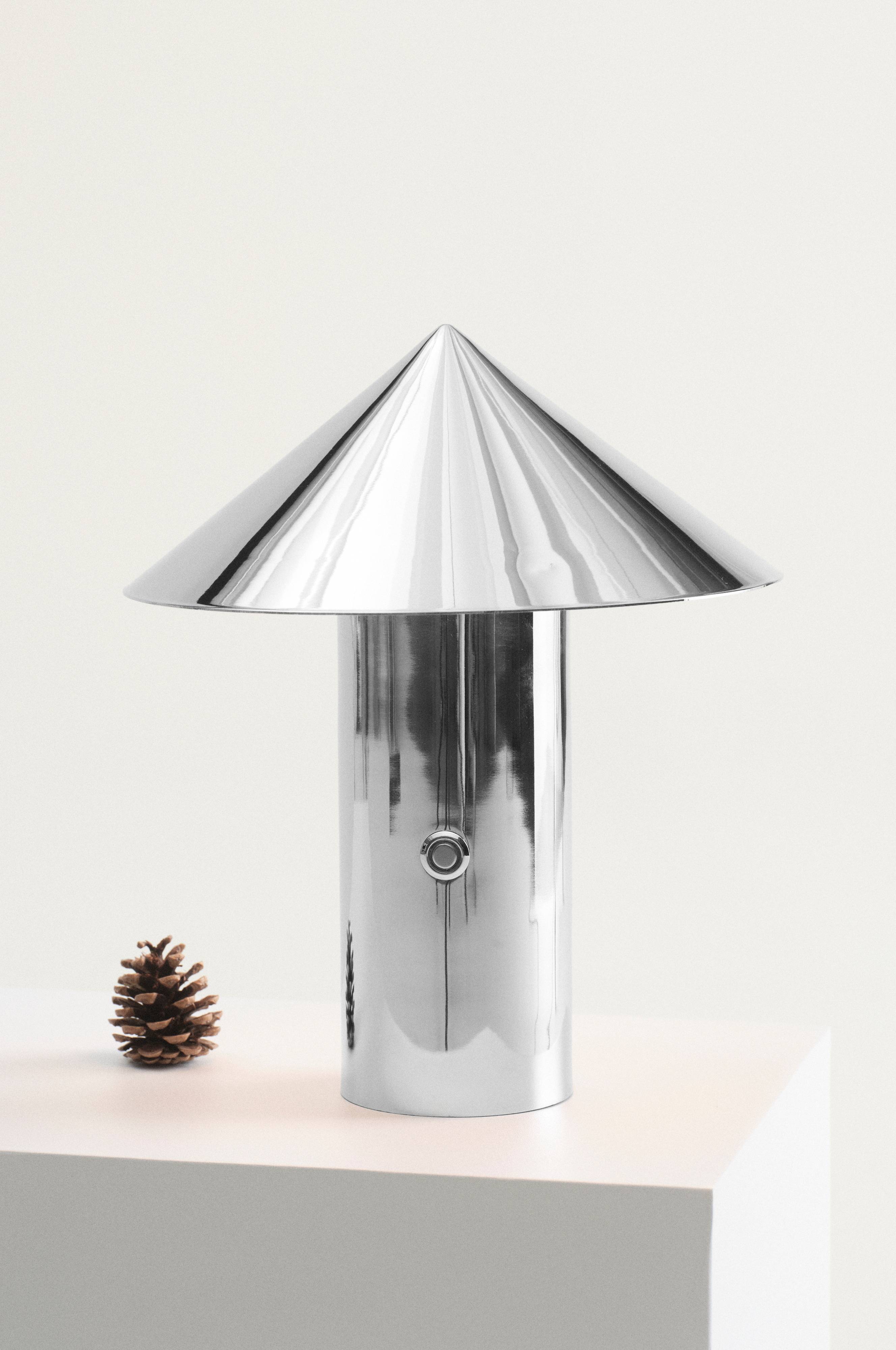 Tafellamp op batterijen met oplaadbare batterij en dimfunctie. De lampvoet en kap zijn van metaal met een gelakte afwerking. De lamp is oplaadbaar en wordt aangesloten met USB-C, oplaadkabel inbegrepen. De knop op de lampvoet wordt ingedrukt om het licht te dimmen. De lichtbron, die LED is, is geïntegreerd in de lamp.