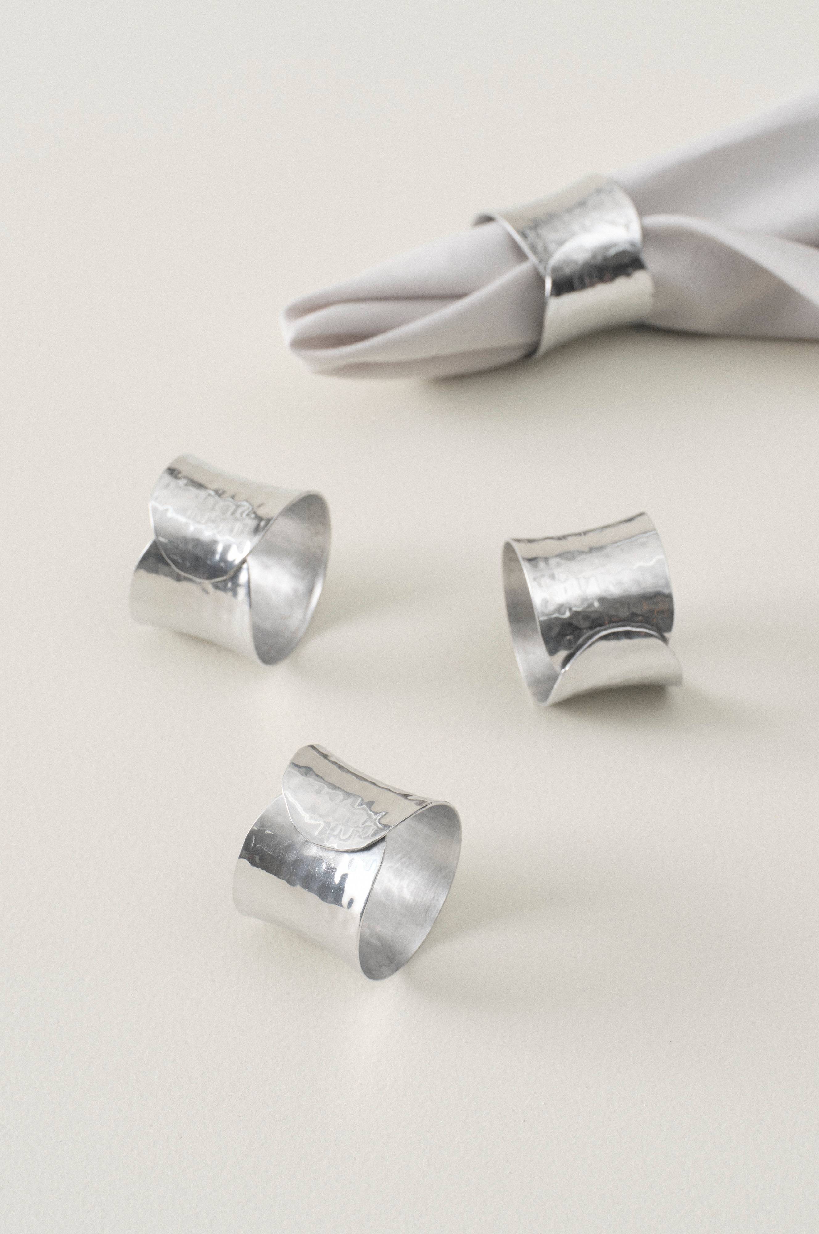 4-pack aluminium servetringen met gehamerd patroon en gepolijste afwerking.