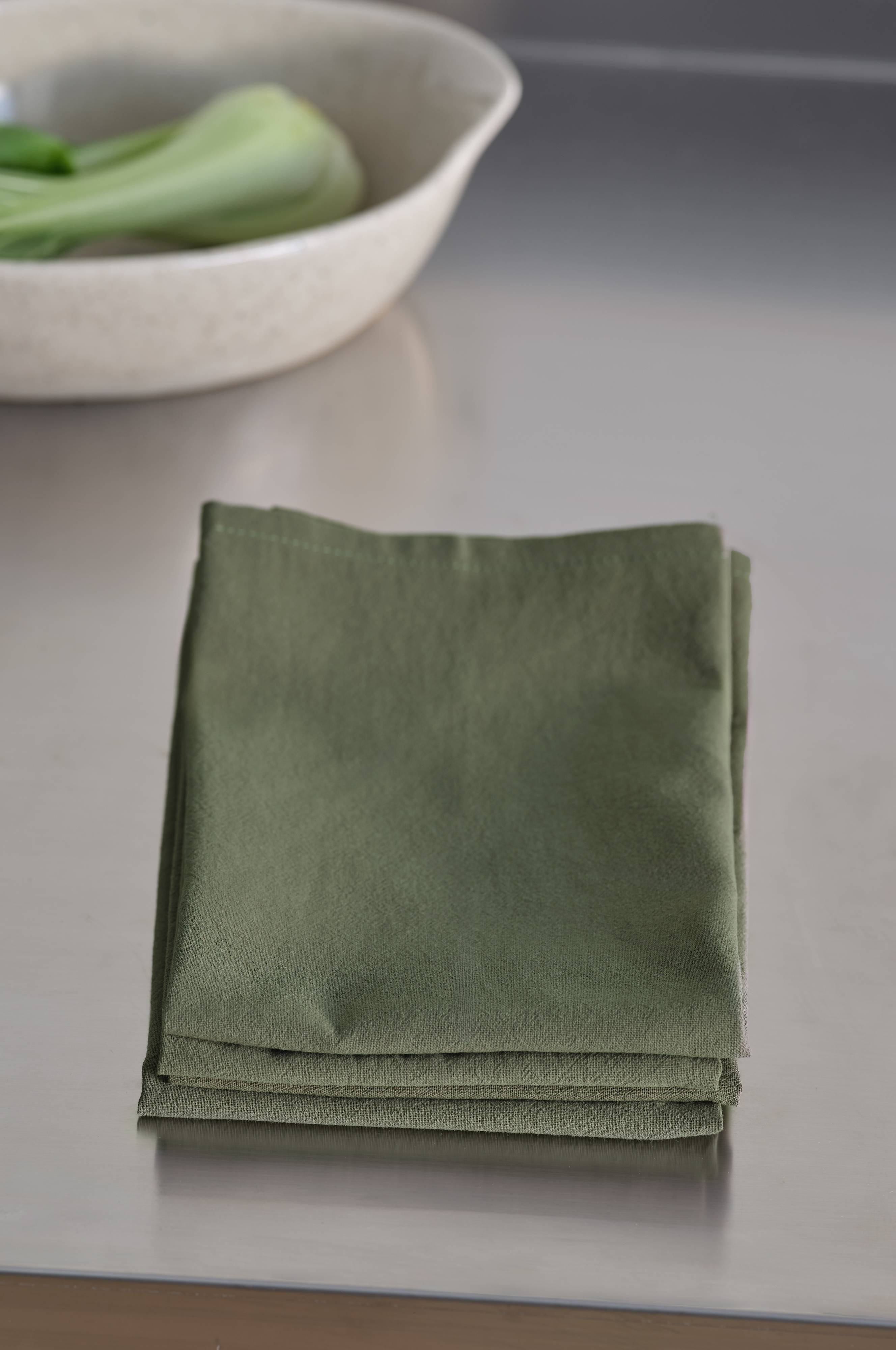 Een set van vier effen servetten van soepel katoen in zachte, gedempte tinten. Effen servetten bieden grote vrijheid bij het tafel dekken; je kunt voor gedessineerd servies kiezen en verschillende dessins en kleuren combineren zoals jij dat wilt.