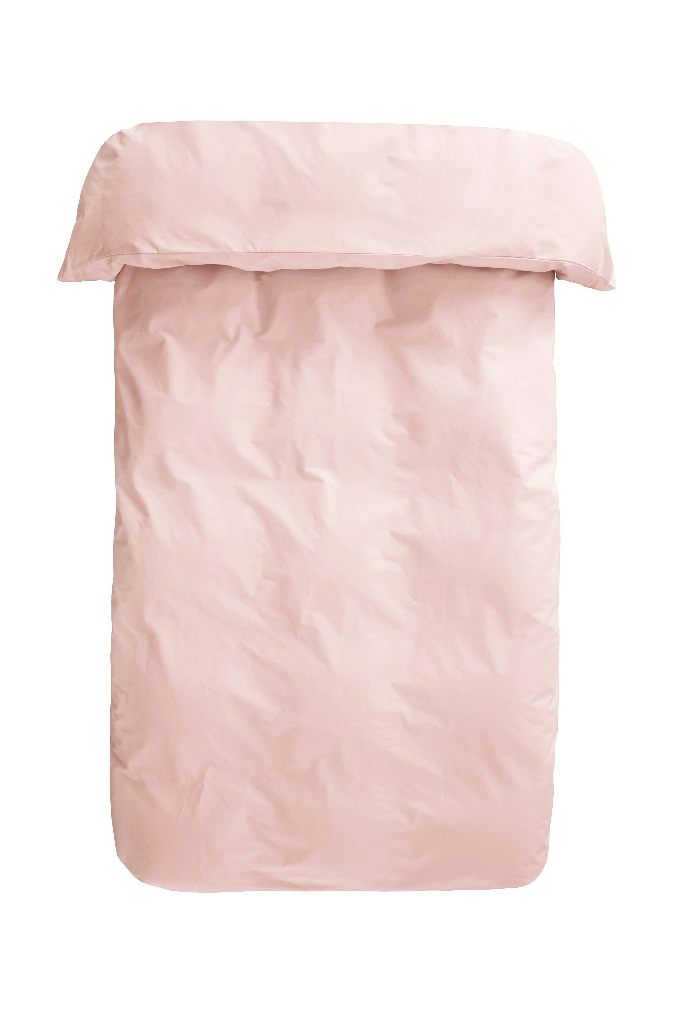 Een dekbedovertrek van effen katoenen perkal. Draaddichtheid 200. (De draaddichtheid geeft het aantal draden aan per vierkante inch van een stof. Hoe hoger de draaddichtheid, hoe hoger de kwaliteit).
