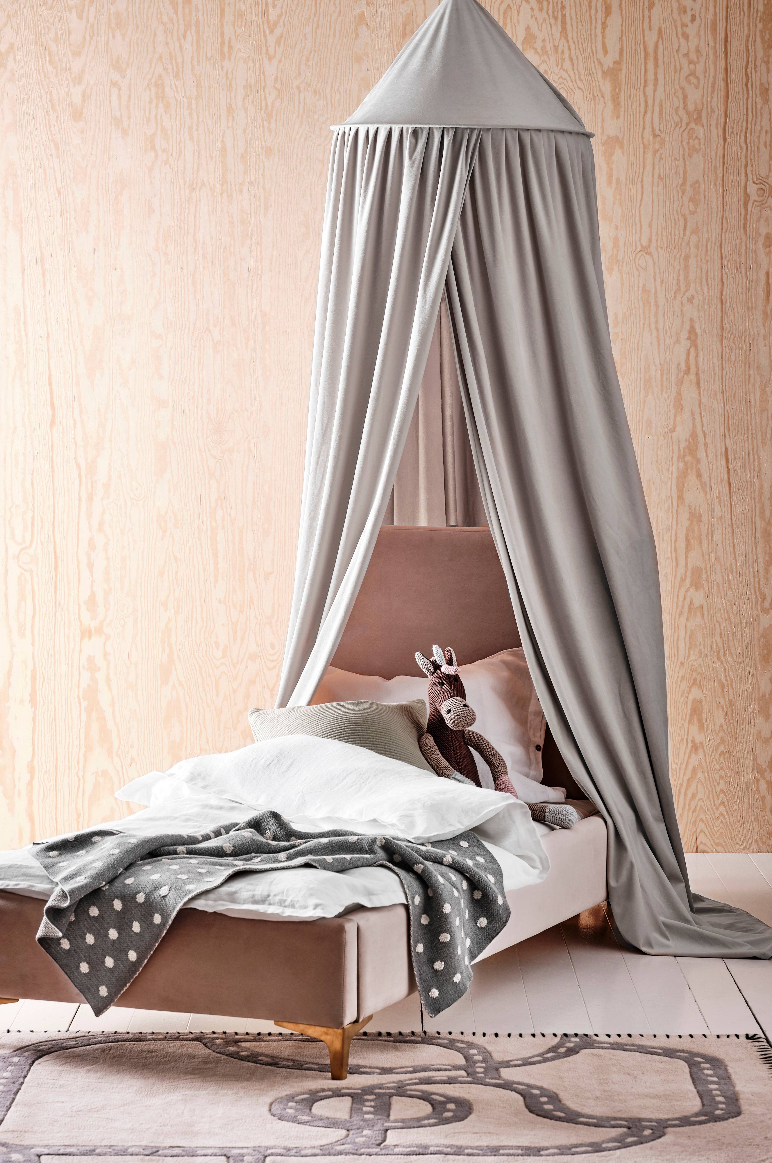 Een bedhemel van zacht polyester die aanvoelt als fluweel en prachtig valt. Hang de bedhemel op in de kinderkamer voor een knus en geborgen gevoel boven het kinderbed.