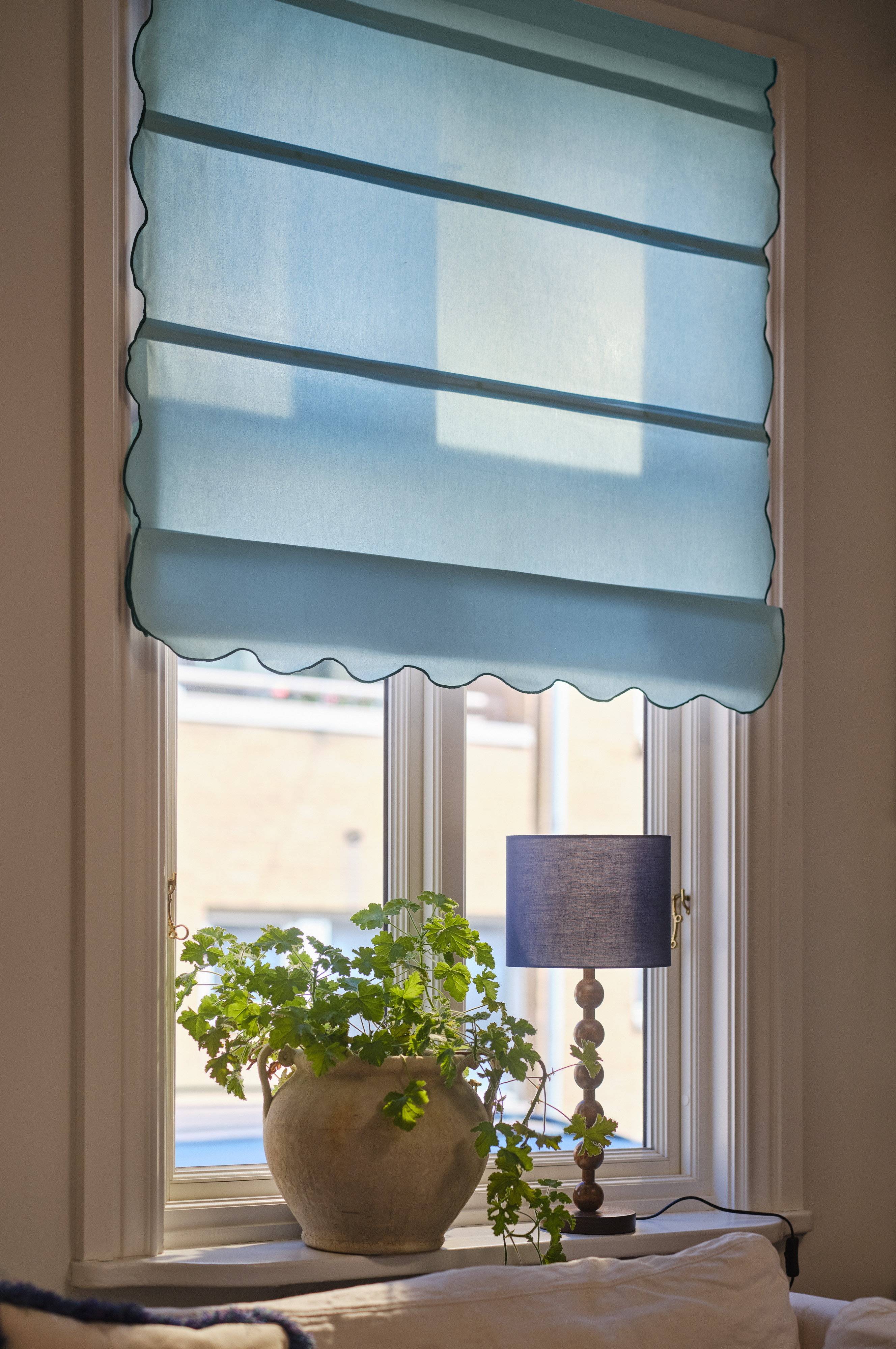 Charmant vouwgordijn, gemaakt van soepel katoen, betovert met prachtige golvende randen. Dit gordijn is perfect voor kinderkamers en brengt plezier en eigenzinnigheid in de ramen. Deze oprolbare gordijnen hebben een slimme hoogteregeling dankzij de bijbehorende magneten aan de zijkanten. Moeiteloos op te hangen aan elke normale gordijnroede.