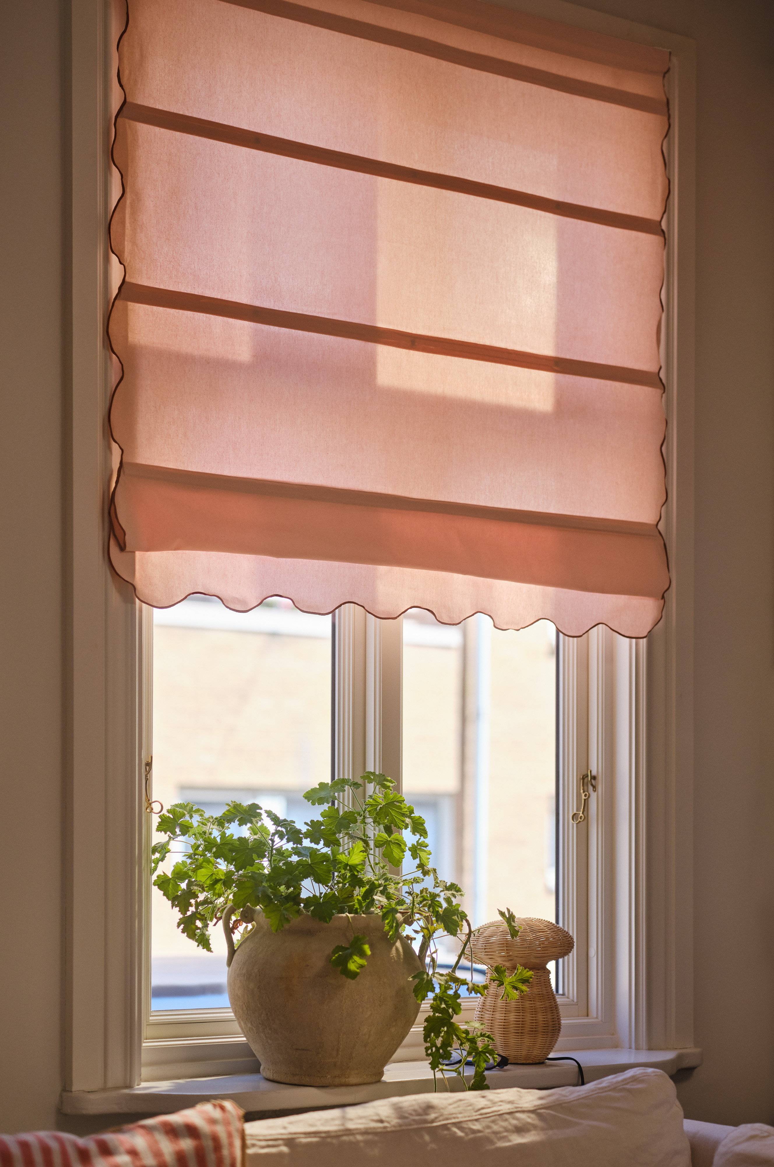 Charmant vouwgordijn, gemaakt van soepel katoen, betovert met prachtige golvende randen. Dit gordijn is perfect voor kinderkamers en brengt plezier en eigenzinnigheid in de ramen. Deze oprolbare gordijnen hebben een slimme hoogteregeling dankzij de bijbehorende magneten aan de zijkanten. Moeiteloos op te hangen aan elke normale gordijnroede.
