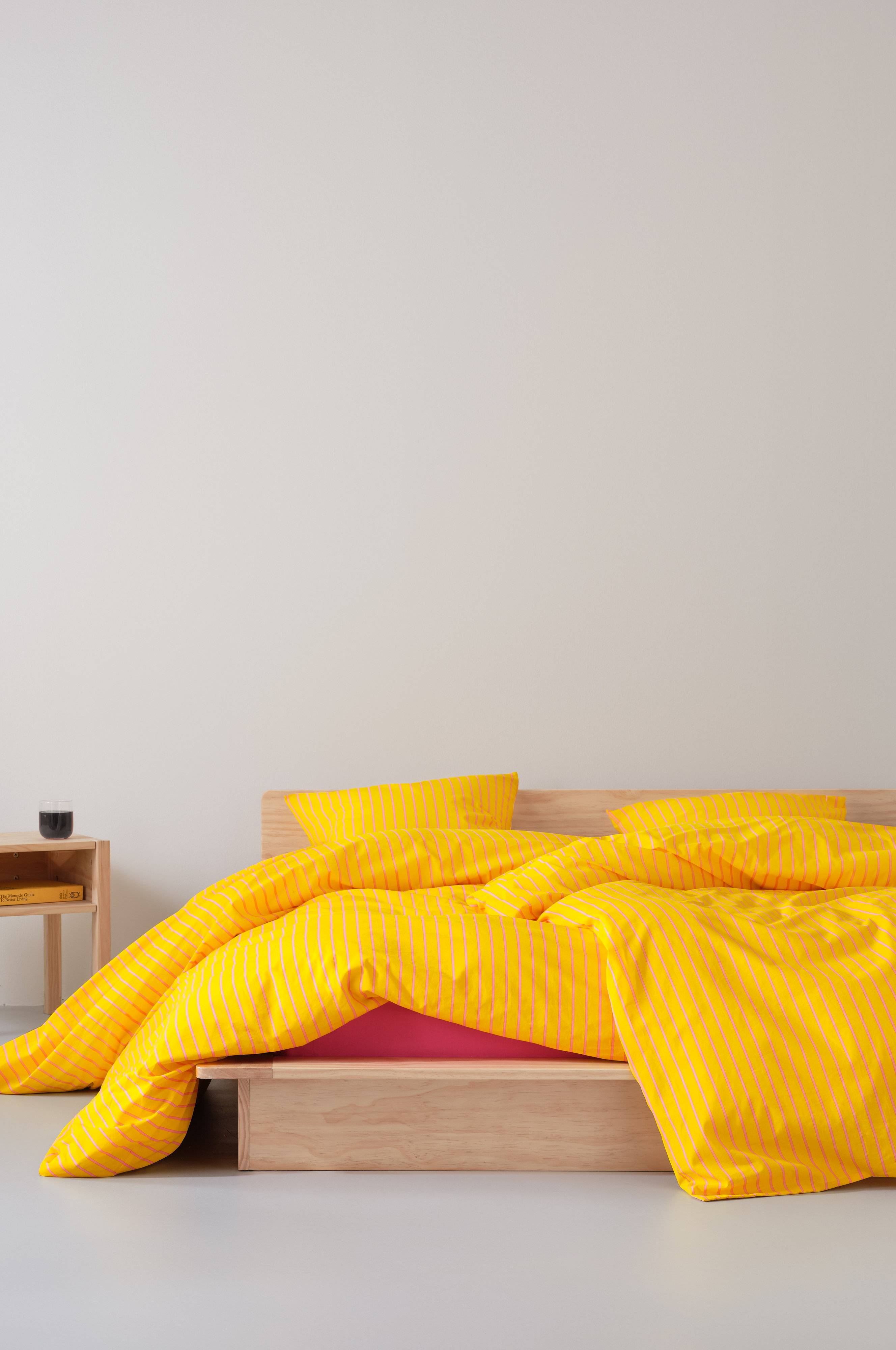 SIMA dekbedovertrek van ecologisch katoen. Gedrukte strepen in frisse kleuren. Verander je slaapkamer in een rustgevende plek.