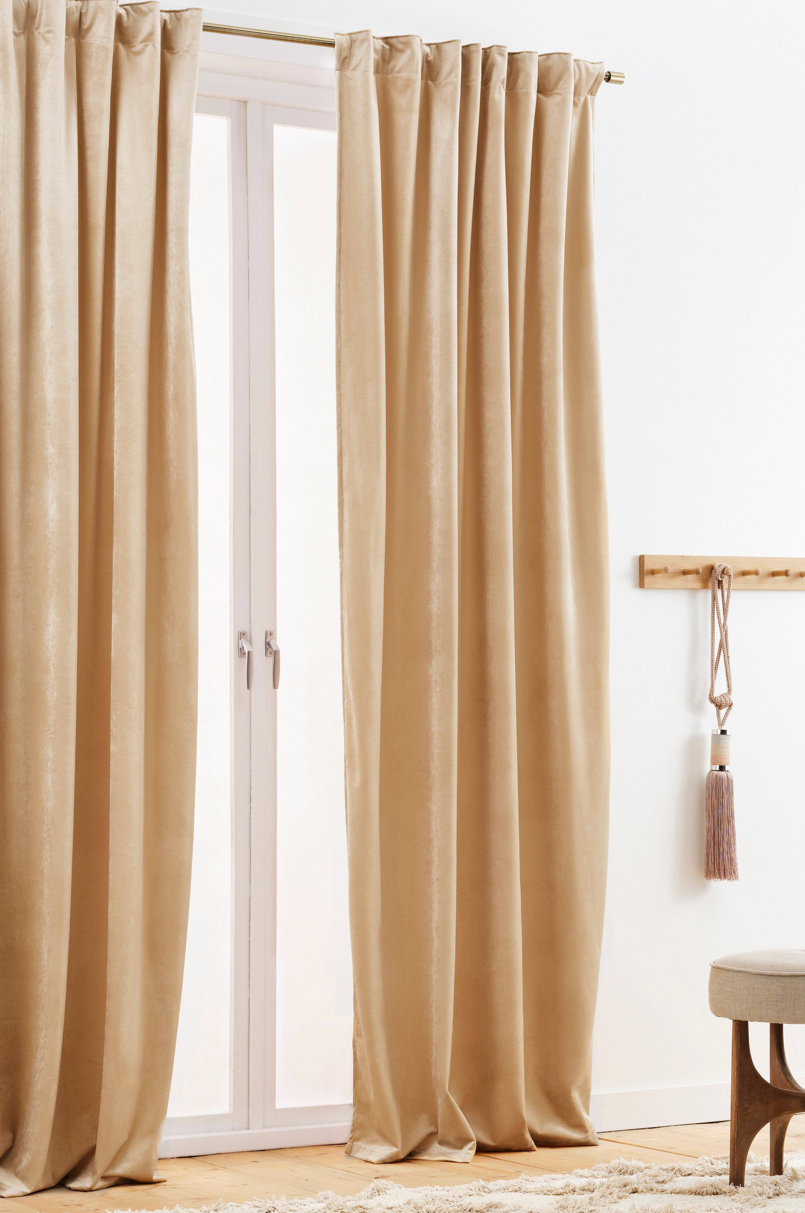 Een set van twee effen gordijnen van fluweel met een vastgestikt multifunctioneel gordijnband. Het luxe gordijn van zwaarvallend, mooi glanzend fluweel geeft de kamer een zachte uitstraling. Het multifunctionele fluwelen gordijn kan op twee verschillende manieren opgehangen worden, zodat het precies bij jouw interieur past. Ze worden opgehangen met blinde lusjes of vingerhaken.