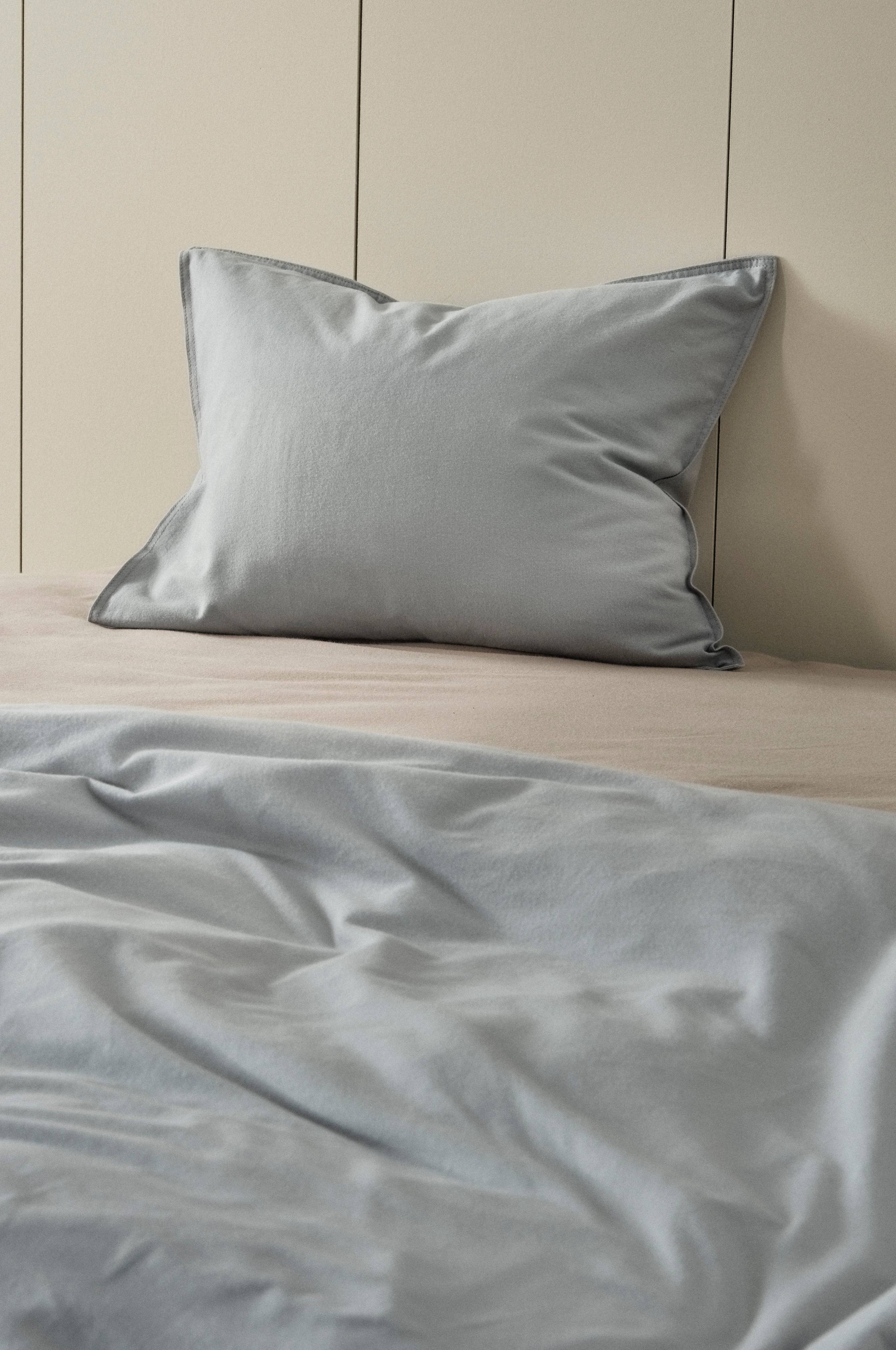 Een kussensloop van geverfd katoenen flanel. Effen kleuren zijn neutraal en flanellen beddengoed voelt aangenaam aan, omdat het zacht en heerlijk warm is. SOFT heeft een sluiting met knopen en een dubbele naad rondom. Draaddichtheid 104. (De draaddichtheid geeft het aantal draden aan per vierkante inch van een stof. Hoe hoger de draaddichtheid, hoe hoger de kwaliteit.)