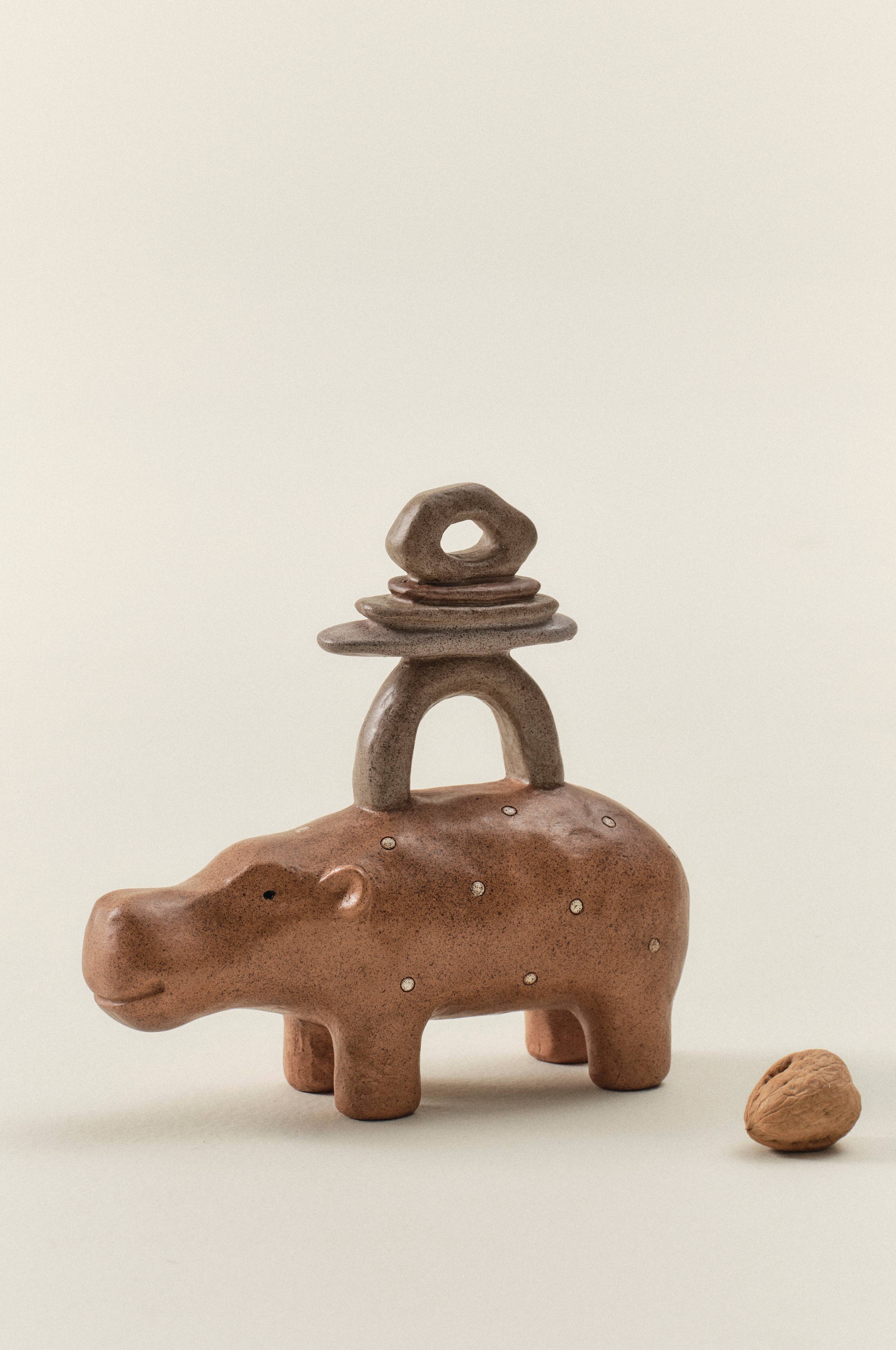 Handgemaakt nijlpaard van polyresin, zorgvuldig verfijnd en met de hand beschilderd. RHENO voegt een charmant tintje toe aan de kamer die je kiest.