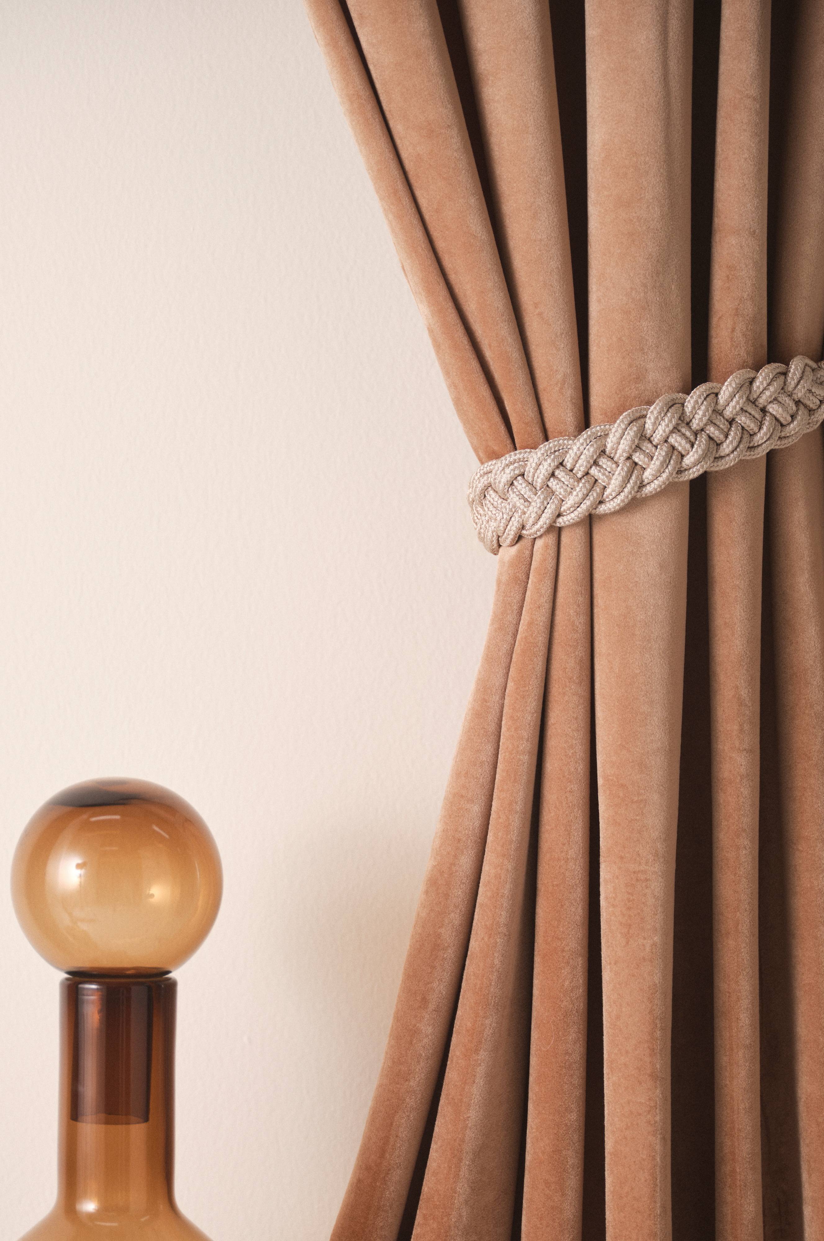Een set van twee embrasses van viscose. SURI zijn fraai gevlochten koorden die je helpen bij het stijlvol ophangen van je gordijnen thuis.