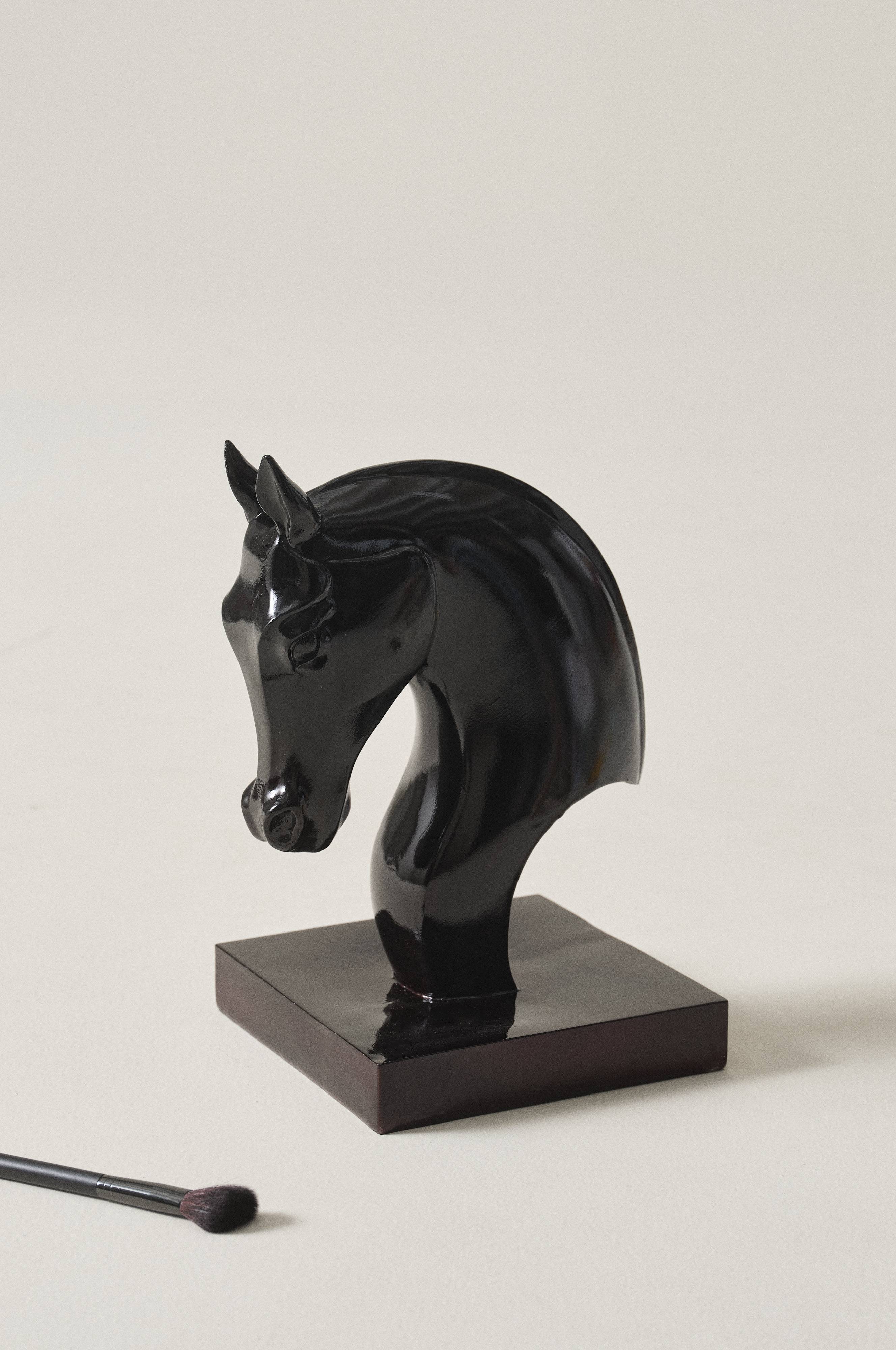 Een decoratief beeldje in de vorm van een mooi paardenhoofd van polyhars in een effen kleur met een glanzende afwerking. Het prachtige paardenhoofd staat op een stevig plateau in dezelfde kleur. SYLVESTER is een decoratief beeld voor iedereen die van paarden houdt of van mooie dingen in het algemeen.