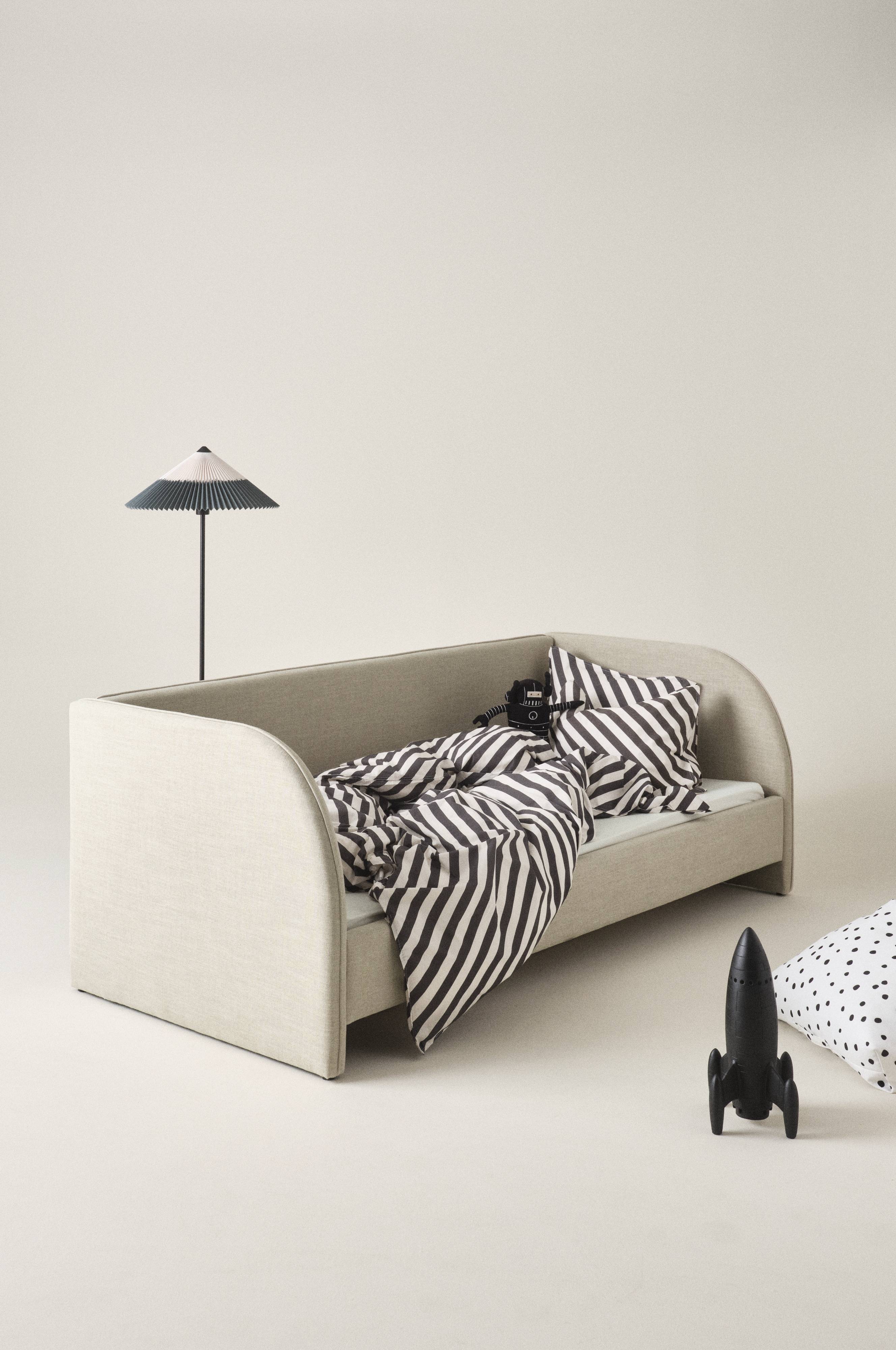 TAMBO is een flexibel bedframe dat de hele dag door te gebruiken is, een bed 's nachts en een gezellige zitbank overdag. Het design is klassiek met een Scandinavische uitstraling. Dat het hout een duurzaam profiel heeft, geeft het product meerwaarde. Hoofd- en voeteneinde en de rugleuning zijn heerlijk gevuld en bekleed met een iets grovere polyesterstof met een fijne structuur. De stof is duurzaam en heeft een slijtvastheid van 30.000 Martindale. De bekleding is niet afneembaar. Het frame is van FSC-gecertificeerd grenen en multiplex. Het bed heeft een lattenbodem en je kiest er een boxspring of schuimmatras naar keuze bij. De lattenbodem zorgt voor een goede luchtstroom en een comfortabel klimaat in bed. Matras/boxspring niet inbegrepen. Enige montage is vereist. Montage-instructies worden meegeleverd.