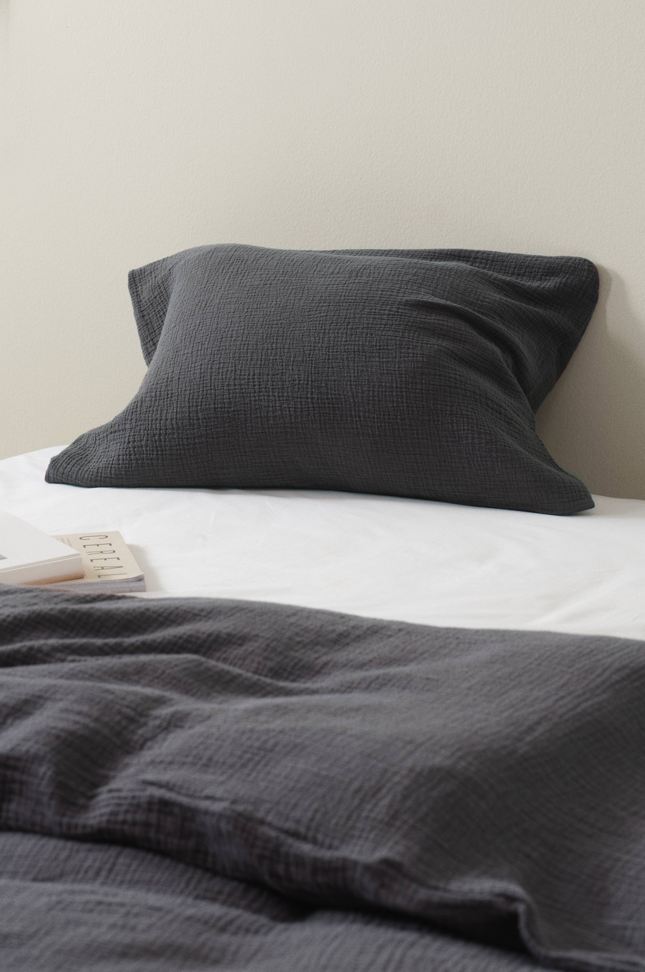 Een effen kussensloop van heerlijk mousseline van biologisch katoen. Mousseline is een zacht en dun dubbellaags materiaal met een bobbelig effect, wat de stof zacht en extra onderhoudsvriendelijk maakt. Je hoeft niet te strijken of te mangelen. Bovendien is het gewassen zodat het zachter aanvoelt en om de bobbelige structuur te creëren. Mousseline is een heerlijke kwaliteit om onder te slapen. Draaddichtheid 178. (De draaddichtheid geeft het aantal draden aan per vierkante inch van een stof. Hoe hoger de draaddichtheid, hoe hoger de kwaliteit.)