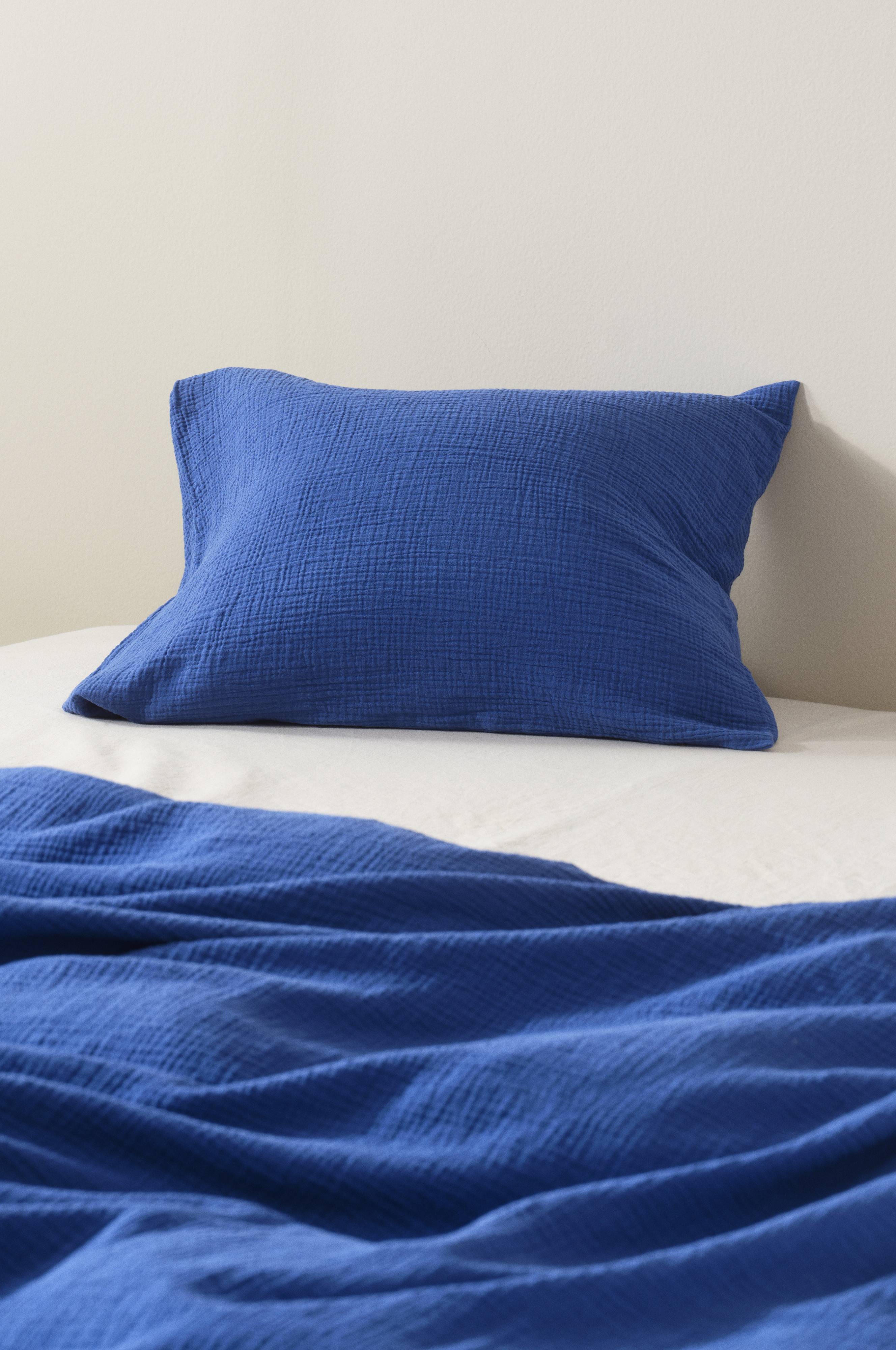 Een effen kussensloop van heerlijk mousseline van biologisch katoen. Mousseline is een zacht en dun dubbellaags materiaal met een bobbelig effect, wat de stof zacht en extra onderhoudsvriendelijk maakt. Je hoeft niet te strijken of te mangelen. Bovendien is het gewassen zodat het zachter aanvoelt en om de bobbelige structuur te creëren. Mousseline is een heerlijke kwaliteit om onder te slapen. Draaddichtheid 178. (De draaddichtheid geeft het aantal draden aan per vierkante inch van een stof. Hoe hoger de draaddichtheid, hoe hoger de kwaliteit.)