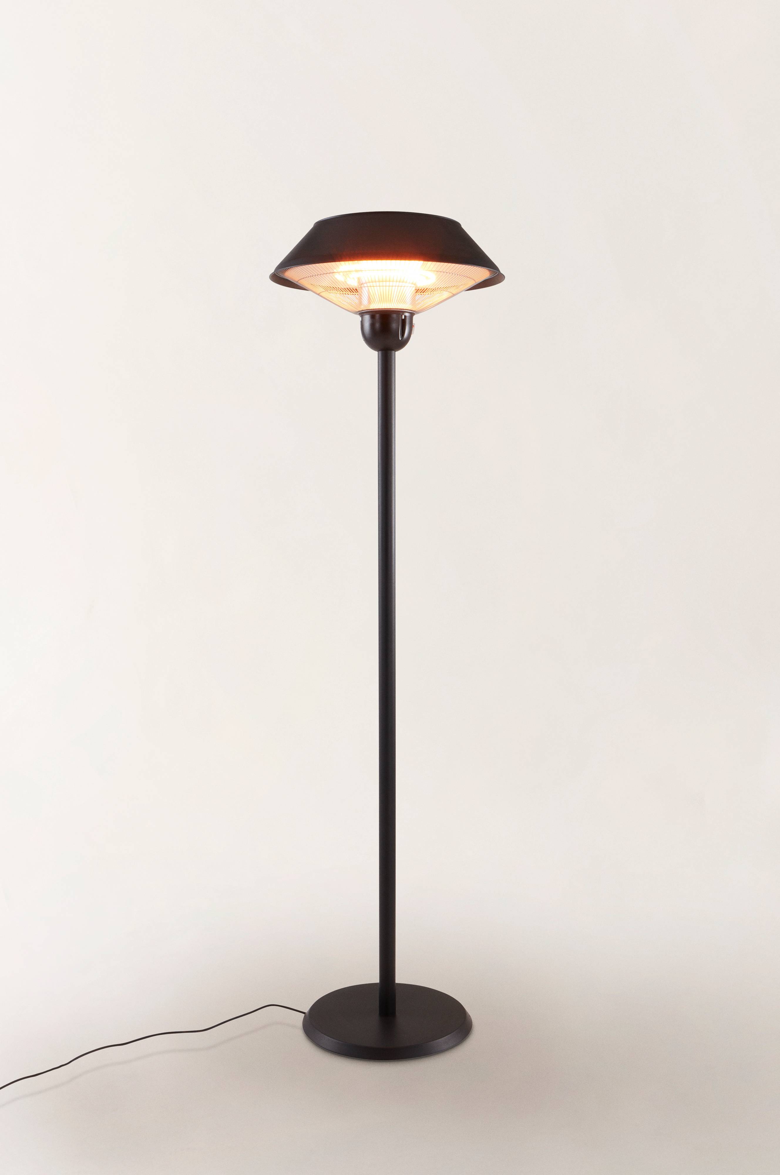 Een terrasverwarmer voor buiten. De terrasverwarmer is gemaakt van staal. De terrasverwarmer is vrijstaand zodat de warmte op een prettige manier wordt verspreid in de serre, op het balkon, in de voortent van de caravan of het op caféterras. De halogeen warmtelamp geeft zowel directe warmte als een prettig warmwit licht. De verwarmer heeft drie standen om de warmte aan te passen. Ingebouwde oververhittingsbescherming. De terrasverwarmer heeft een geaard snoer van 1,9 m met een stekker. Enige montage is vereist. Montage-instructies worden meegeleverd.
